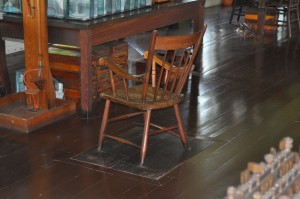 I also knew that Henry Ford was a Fan of Thomas Edison, but I didn’t know that he BOUGHT EDISON’S LAB and MOVED it to Michigan! Some of the buildings were original, some reproductions, and ones like the lab were sort of a blend of both. Pretty strange to go to Detroit to race kids electric cars, and end up walking through Thomas Edison’s Lab! In the one building, Thomas Edison visited late in his life, and spoke seated. Afterwards, Ford had Edison’s chair nailed to the floor. It’s been un-touched in the same spot ever since. The floor even looks different right there. When the floor eventually had to be redone, carpenters simply worked around it.