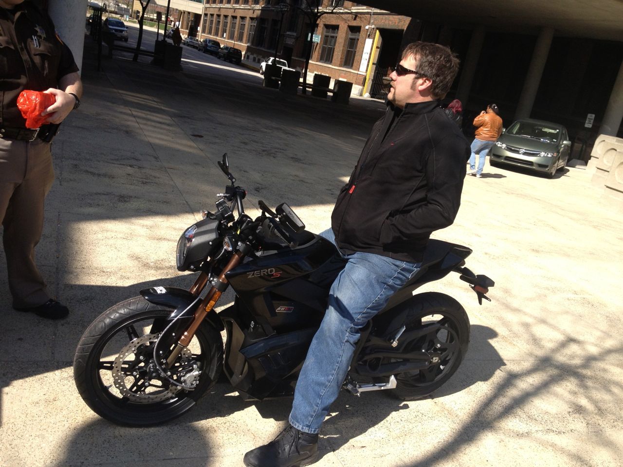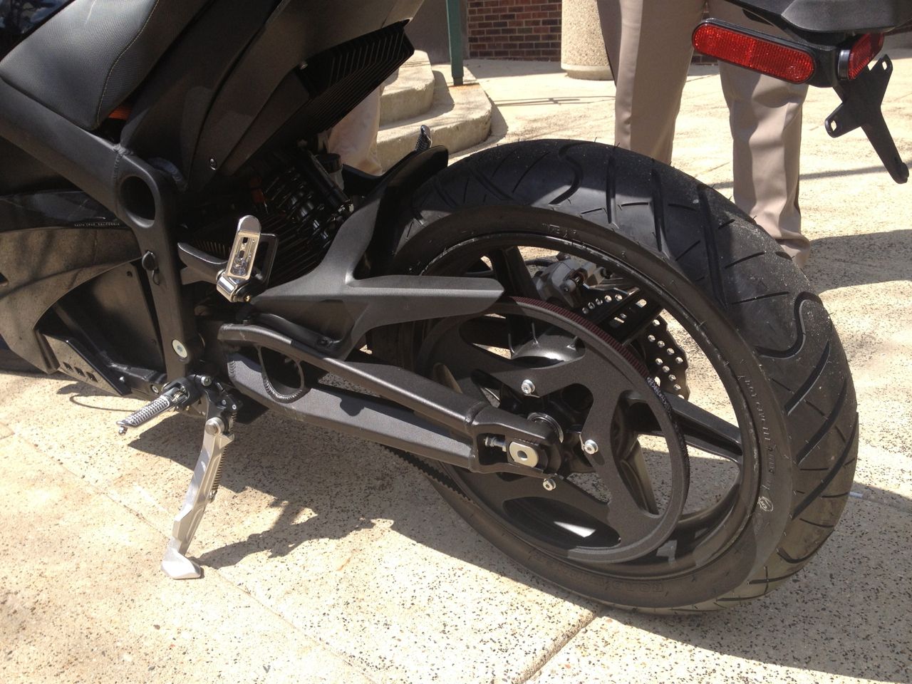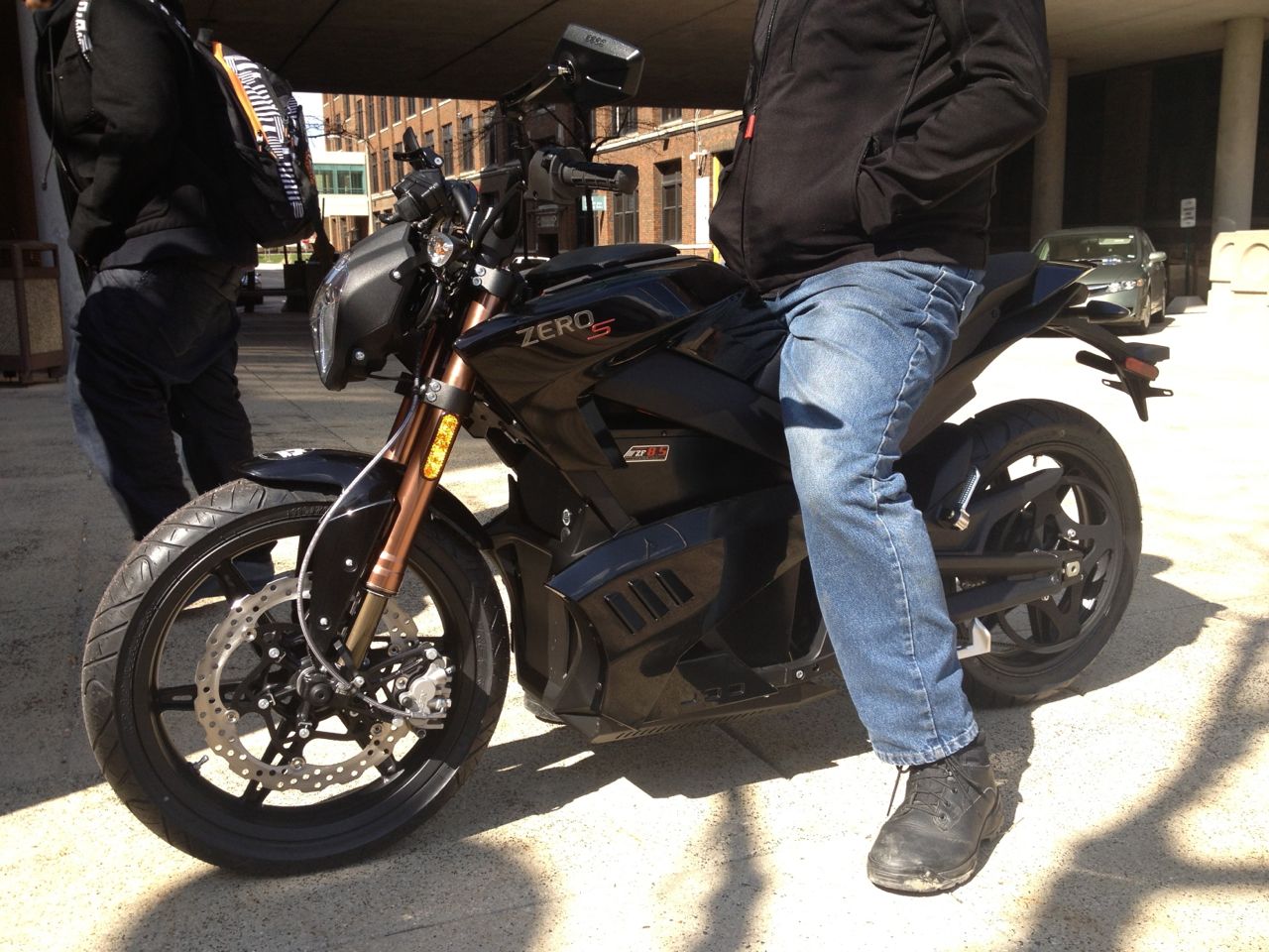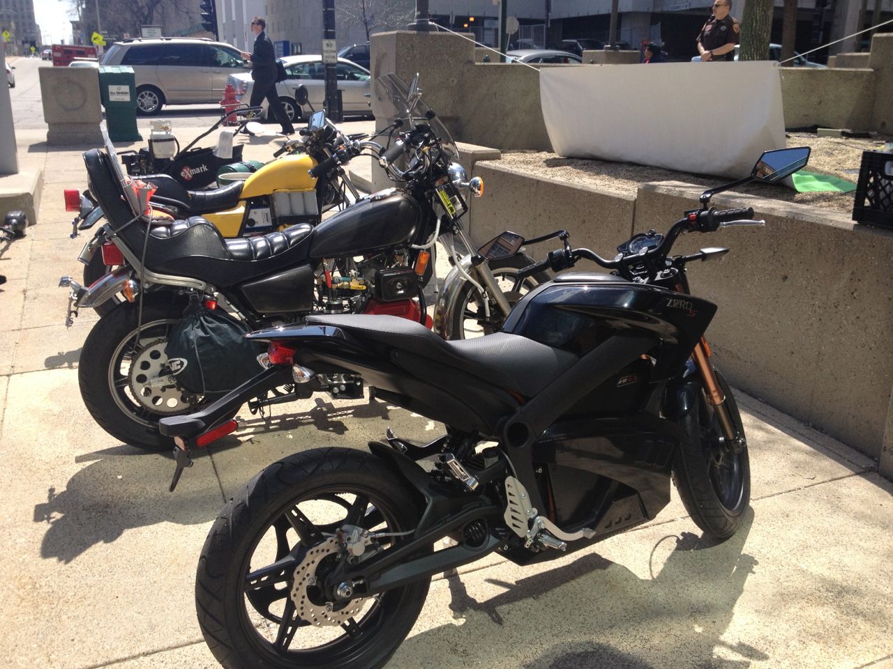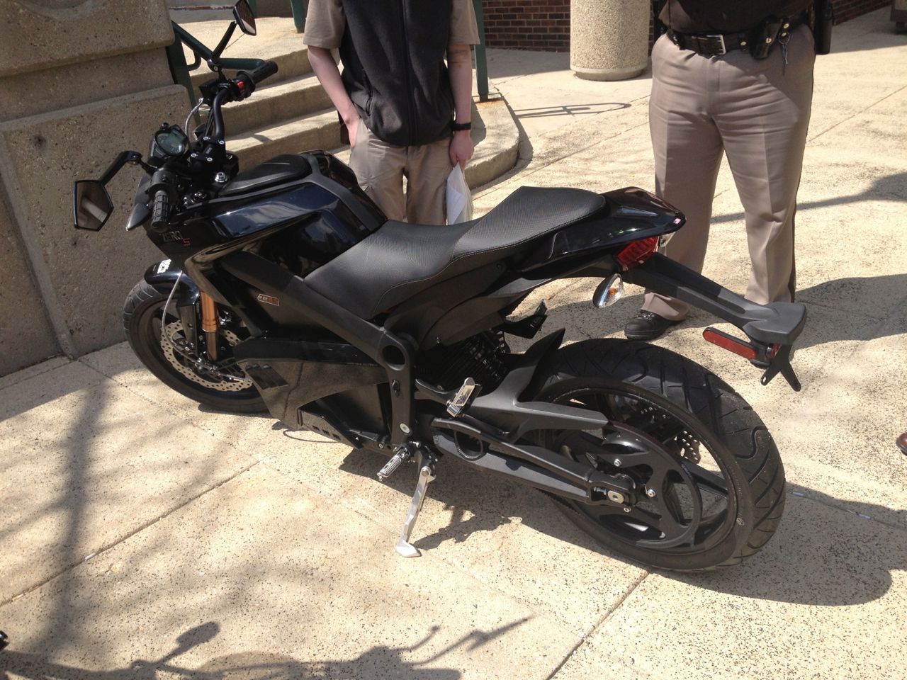 At the end of the day, the cars were all cleared out and the dealership employee who was going to ride the cycle back to the dealership came out and took the cycle through a spin around the parking lot. The Zero has lots of pep, and can easily do small burn-outs.