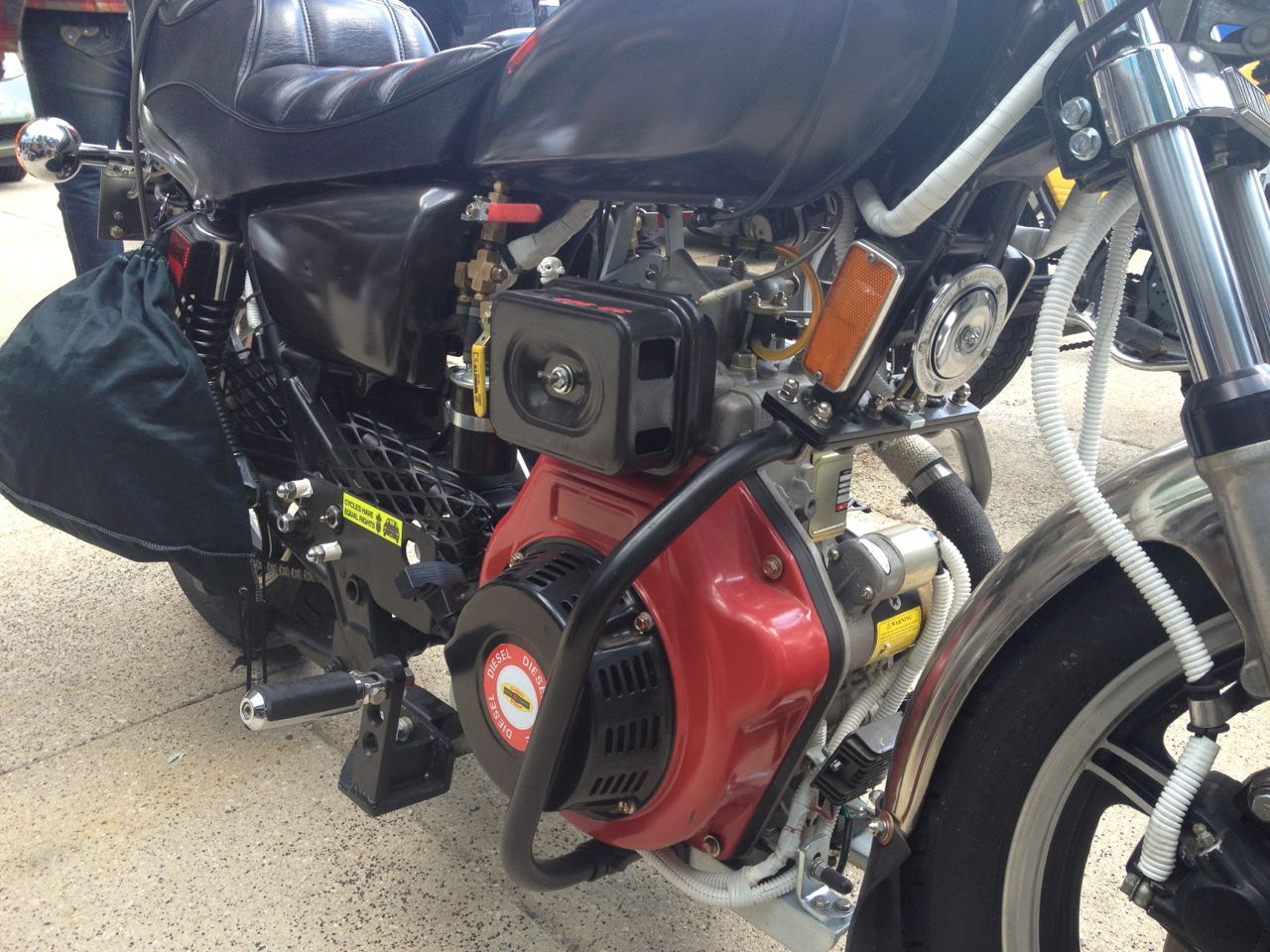 I was there showing off my DIY Electric Kawasaki KZ44o motorcycle. I also cracked a big grin to see that my friend Leslie had his DIY Diesel Yamaha there. Last time I saw him, he was telling me all about it, and I was really looking forward to seeing it in person.