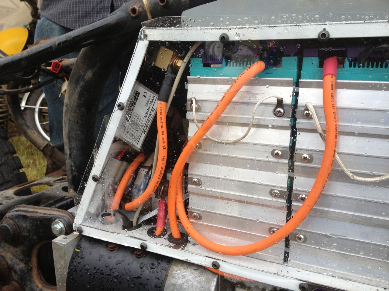 The cycle design is pretty slick overall. The lithium batteries, charger, DC/DC converter, and other components are all mounted in a box that bolts in place of the original engine. It looks like it would take well under an hour to swap out the system to a brand new frame! Ryland already has a new (shiny and street-legal) frame to swap the components to, now that it’s all been tested out!