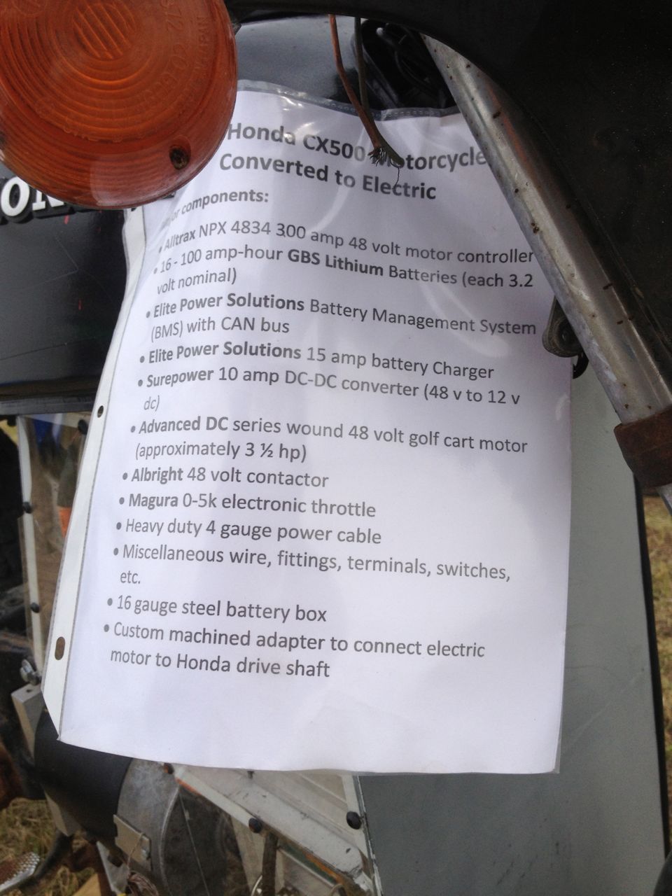 - Ryland’s lithium battery, driveshaft powered electric cycle
