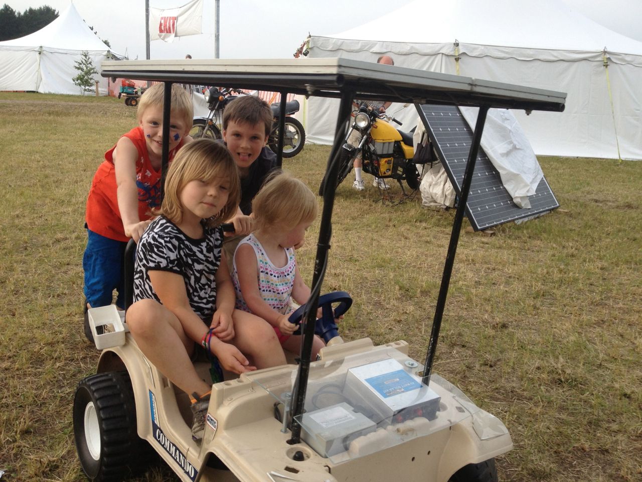 - Kids on the Solar PowerWheels Jeep.