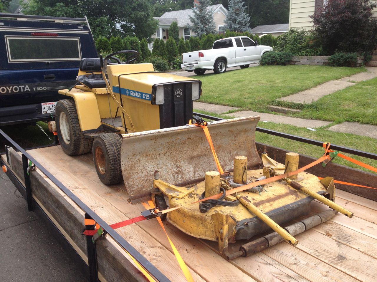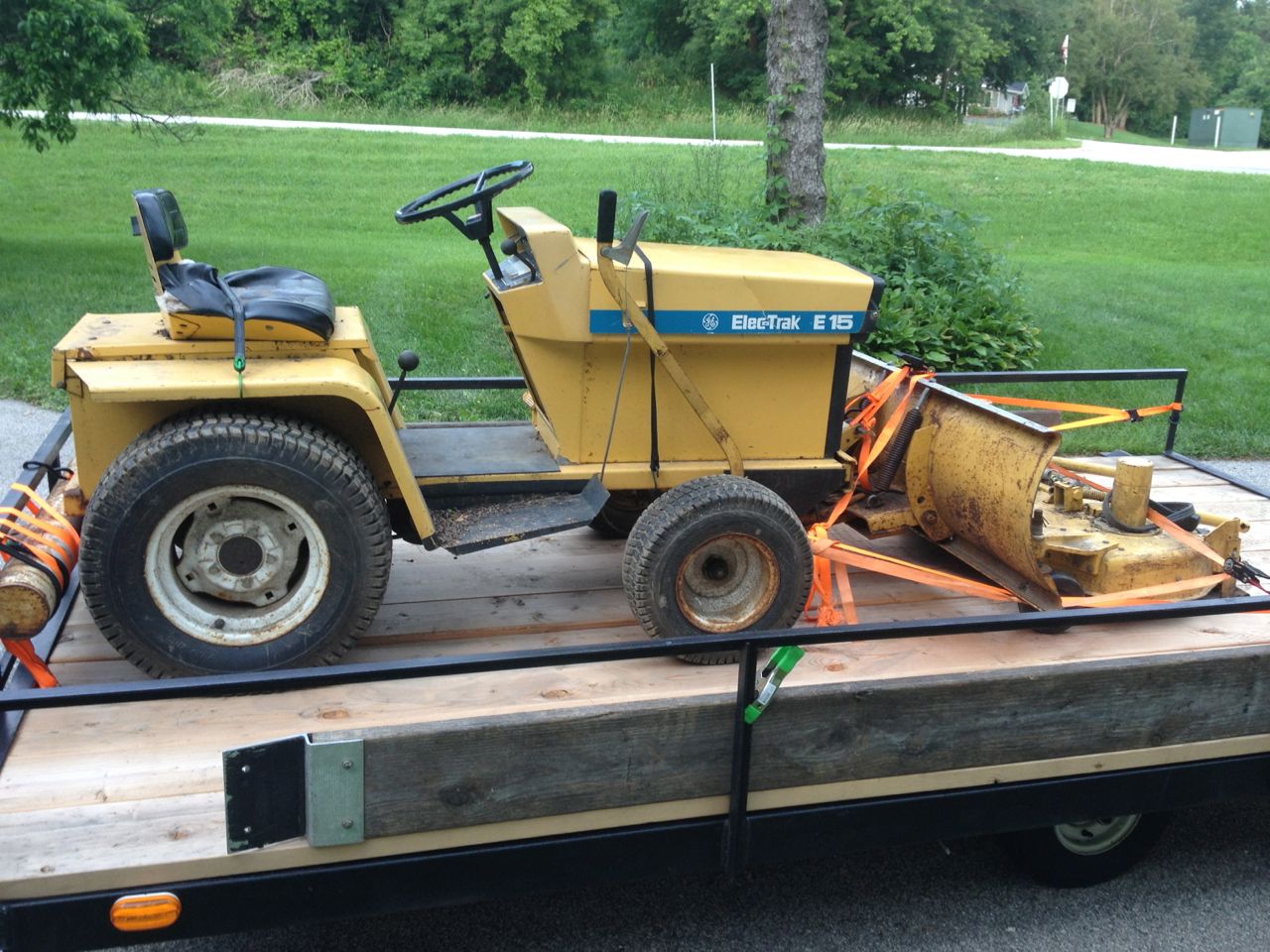 So, last night, I made a two-hour drive with my truck and trailer and my wad of cash (only $250!) to go get the tractor. Overall, it’s in great condition! It was pretty easy to lash it down to my trailer and drag it home. *Batteries not included, but I have just a few spares in my garage. Also missing was an instrument cover plate, but I should be able to make one of those easy enough.