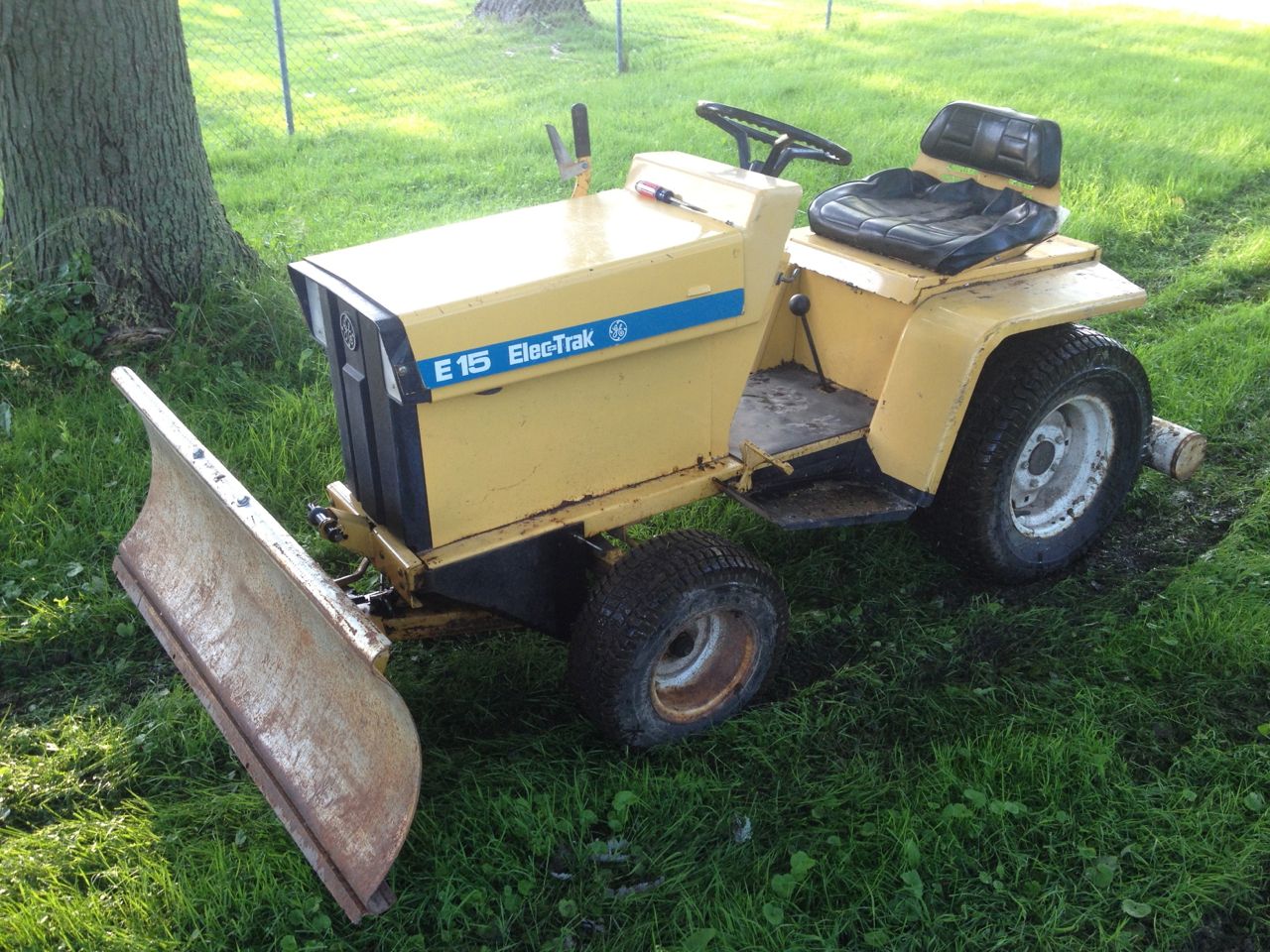 The tractor purred to life. Nothing like a 40-year-old machine running like a champ, just by adding batteries! Woooooo! I was now cruising around my yard on a 800lb tractor with a snow plow! Yipes! Not quite the correct implement for summer.