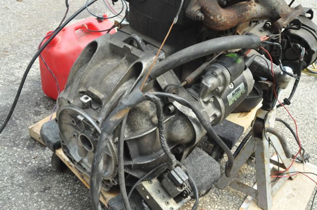 Now, it was time to actually fire up the engine. With jack stands under the engine mounts, the 12V battery wired to the starter, and the glow plugged heated for a few moments, now was the MOMENT OF TRUTH! Steve hit the starter remote and…… (drum-roll please!) it started right up!