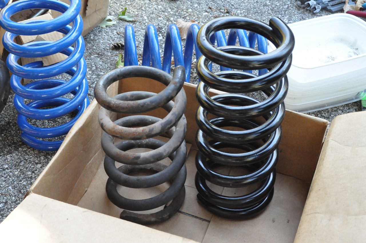 Changing springs is a bit more complicated. It requires disconnecting the two heavy bolts that connect the A-arm to the frame of the truck. Pulling out the short springs wouldn’t be too hard, but it would be a trick to install the new longer ones and COMPRESS them without them launching out. Also, it was Sunday. The GOOD auto parts store is closed on Sunday and none of the other local parts stores had springs in stock. So, it meant a trip towards the city to get to a store that had them. Fortunately, I could order online (with Paypal money from selling electric car and motorcycle DVDs) and then pick-up in the store. After my on-line discount code, the springs were about $100.