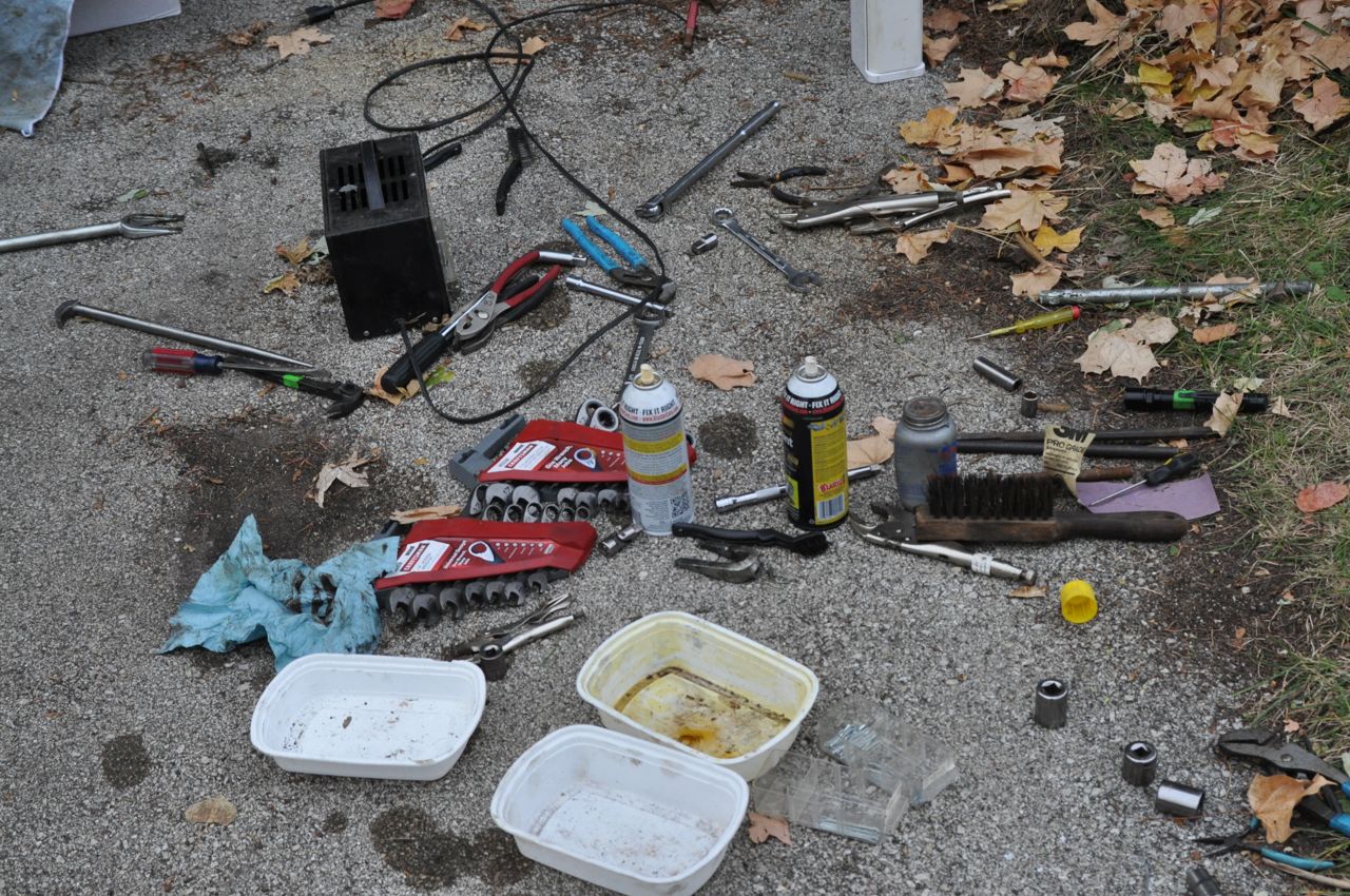 At that point, I was ready for a shake-down, a quick ride around my quiet neighborhood roads to make sure that I did everything right and nothing comes apart or flies off the first time out. Actually, I had to clean up my tools first. Every tool I owned seemed to litter my driveway. When it comes right down to it, I really just own one tool – “Not Quite the Right Thing”. I’m pretty sure that every home mechanic has just about every variation on this tool. That’s why we need so many of them. I cleaned up my collection of not-quite-the-right wrenches, sockets, screwdrivers, and pry-bars. Then I took my shakedown drive.
