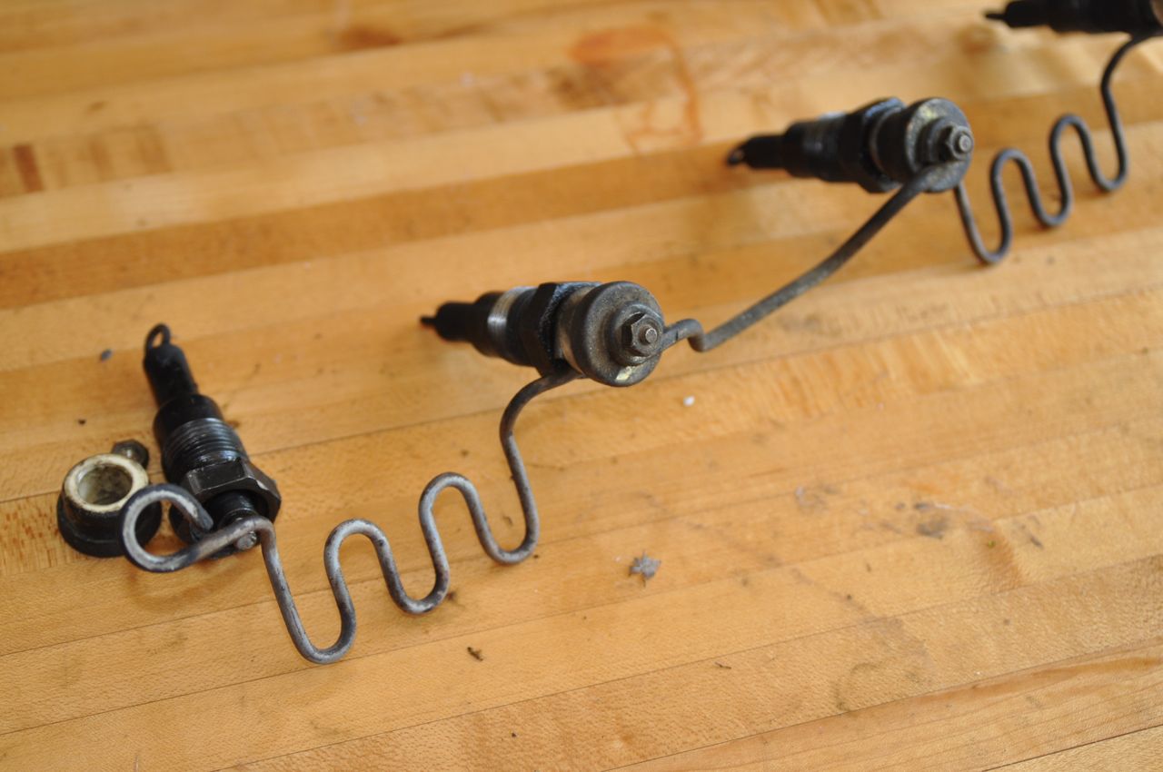 So, I’ve been slowly learning as I can, reading books and watching online instructional videos, and chipping away at the project. I have a diesel engine out of a Mercedes 240D sitting in my garage. I’ve already test-run it and replaced the water pump. It’s still using the old-style glow plugs. While I’m waiting to eventually get on the same schedule as my diesel-mechanic buddy to perform some REAL work on this project, I thought I would give a shot at upgrading the glow-plugs to the modern style.