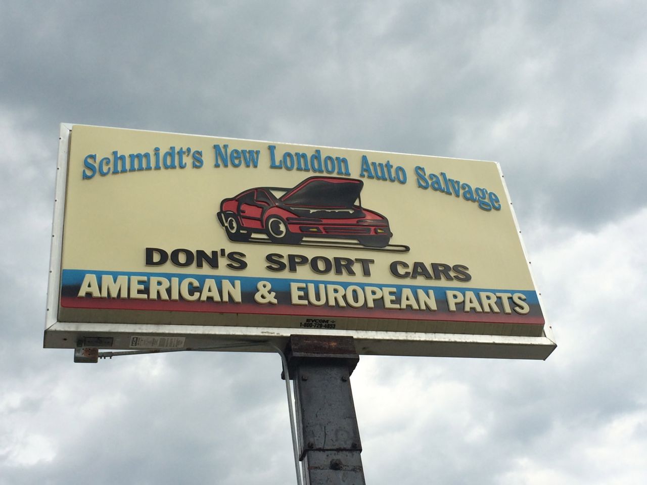 I finally arrived at Schmidt’s New London Auto Salvage, a lively junkyard with plenty of crashed cars on display up front at huge discount prices and a big yard out back. I had called ahead to make sure they would have the transmission. Looked like it was a busy day there. As I pulled in, one guy was loading a pair of engines into the back of a pickup. I headed in to where the sign said “Office” and inquired about the transmission. The owner was busy on the phone, but got to helping me right away as he was finished. I was glad to see the transmission was already in the front. I was helped out by “Junior” and another employee, and it didn’t take long before I was explaining what it was I really wanted to do. I told them about the concept of the diesel engine and forklift motor to build a hybrid truck. Right away, the one guy’s eyes lit up, and said “Hey, I know what you need. Come over here.” I followed him into the side yard, expecting to see a half torn-apart forklift, and instead saw a silvery flat rectangle – a battery pack. “It’s from a Ford Escape”, my escort announced. Sure enough, “Ford Motor Company” was emblazoned across the top of the case and “300V” was listed on the small warning sticker.