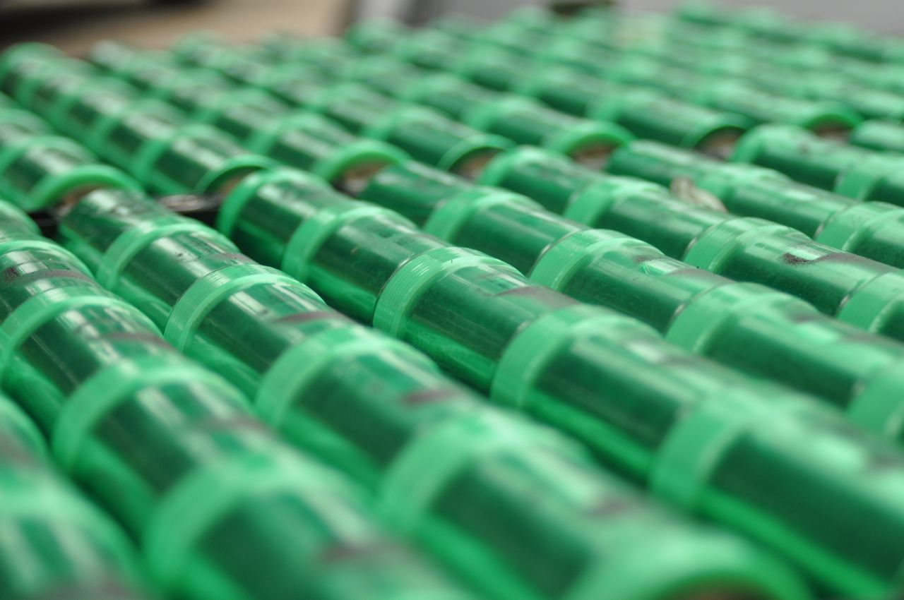 I checked the polarity of each with my multimeter and then marked the Negative end (-) with a black Sharpie marker. Then I pulled them out, one at a time, and stacked the sticks, all pointing the same direction.