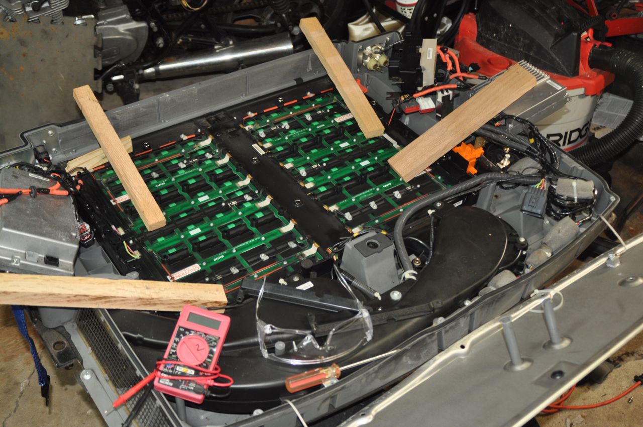 So, I set to work taking the pack apart. (Warning: Many battery packs are 300V+DC and potentially FATAL electric shock hazard. Kids, don’t try this at home!)