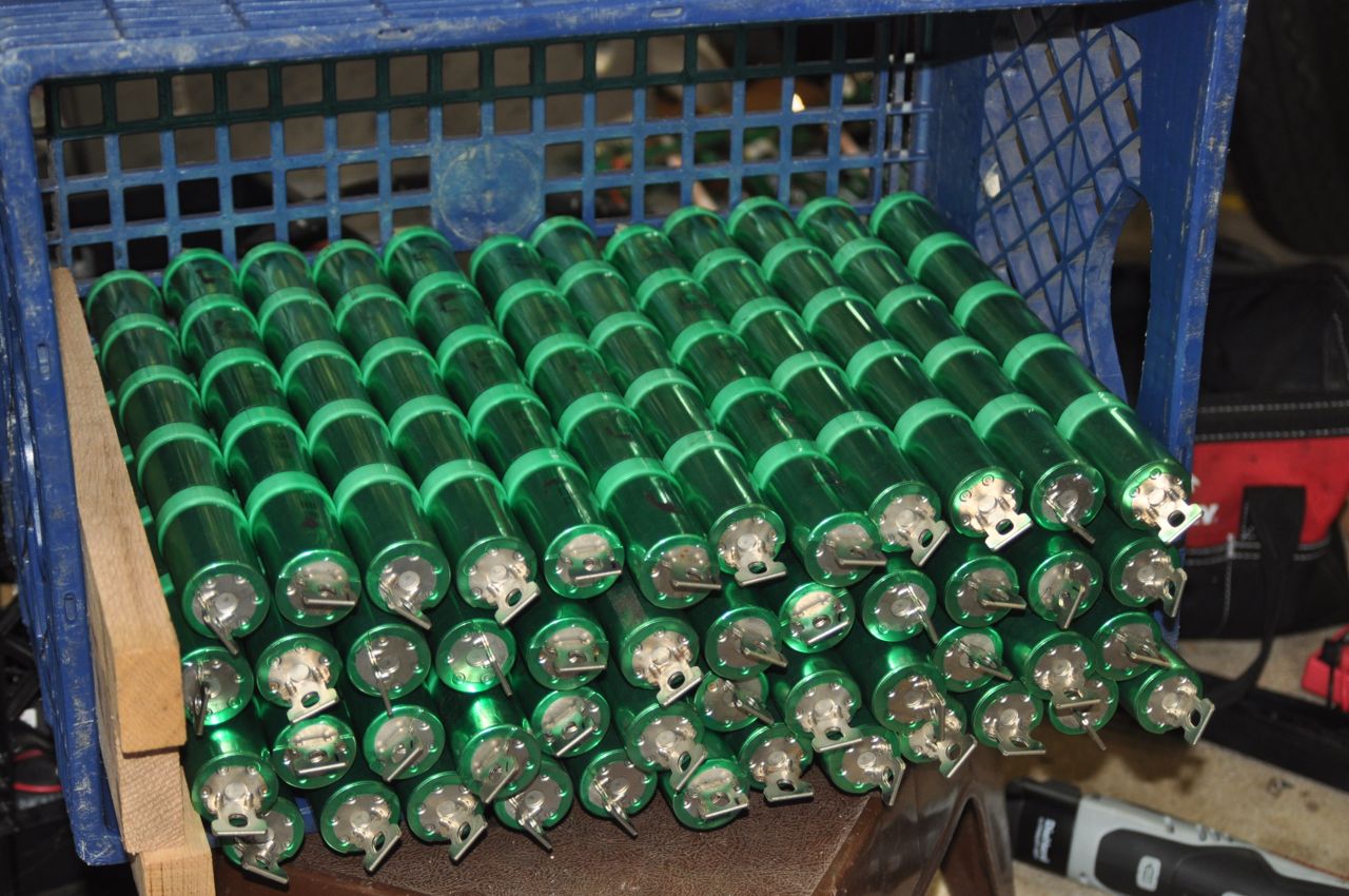 The cells in the pack are Sanyo NiMH “D” cells, with 5 connected in series to make 6V sticks. The entire battery pack is composed of 50 of these 6V sticks.