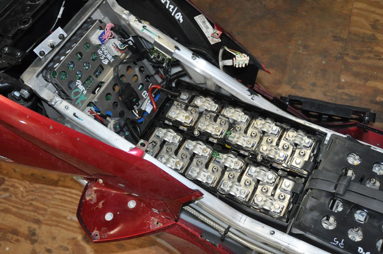 We finally arrived at the seller’s and got to take a look at the cycle. A 2007 model, it was in great shape and had a nice bold dark red finish. About 500 original miles on it. The seller described how the cycle had progressively less range until one day, it simply didn’t turn on. He had no experience rebuilding battery systems, and his wife wanted it out of the garage if it was just going to sit there.