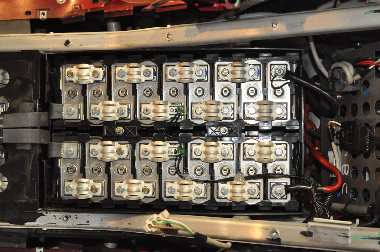 The battery pack in a 2007 Vectrix is a 125V nominal Nickel-Metal-Hydride battery consisting of two main blocks of cells, weighing in at about 200 pounds. I put a volt meter on to test the pack. The 125V pack measured…… Two. Two volts! For the entire pack!