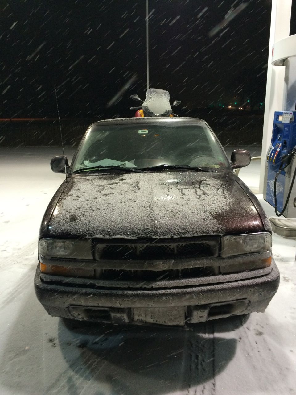 The rest of the ride home was a slow one. Traffic on the interstate was at about 45 mph most of the ride. Plenty of cars in the ditch the whole way home. While having several hundred pounds of non-functioning scooter in the back of the truck didn’t help my suspension, it actually WAS good for traction! Nothing like a little extra weight on the back axle of a rear-wheel drive!