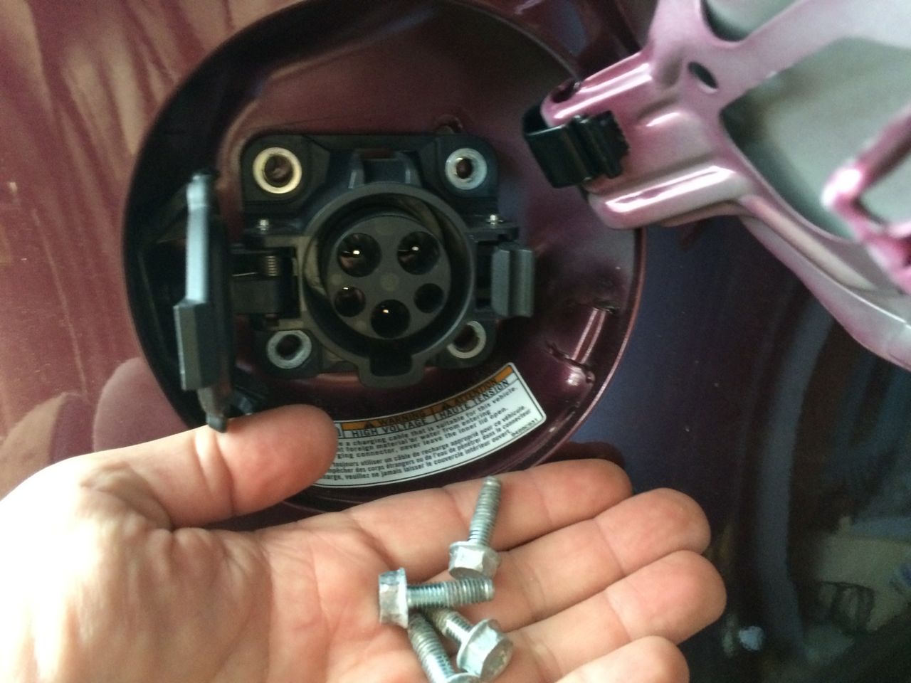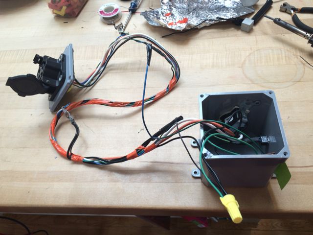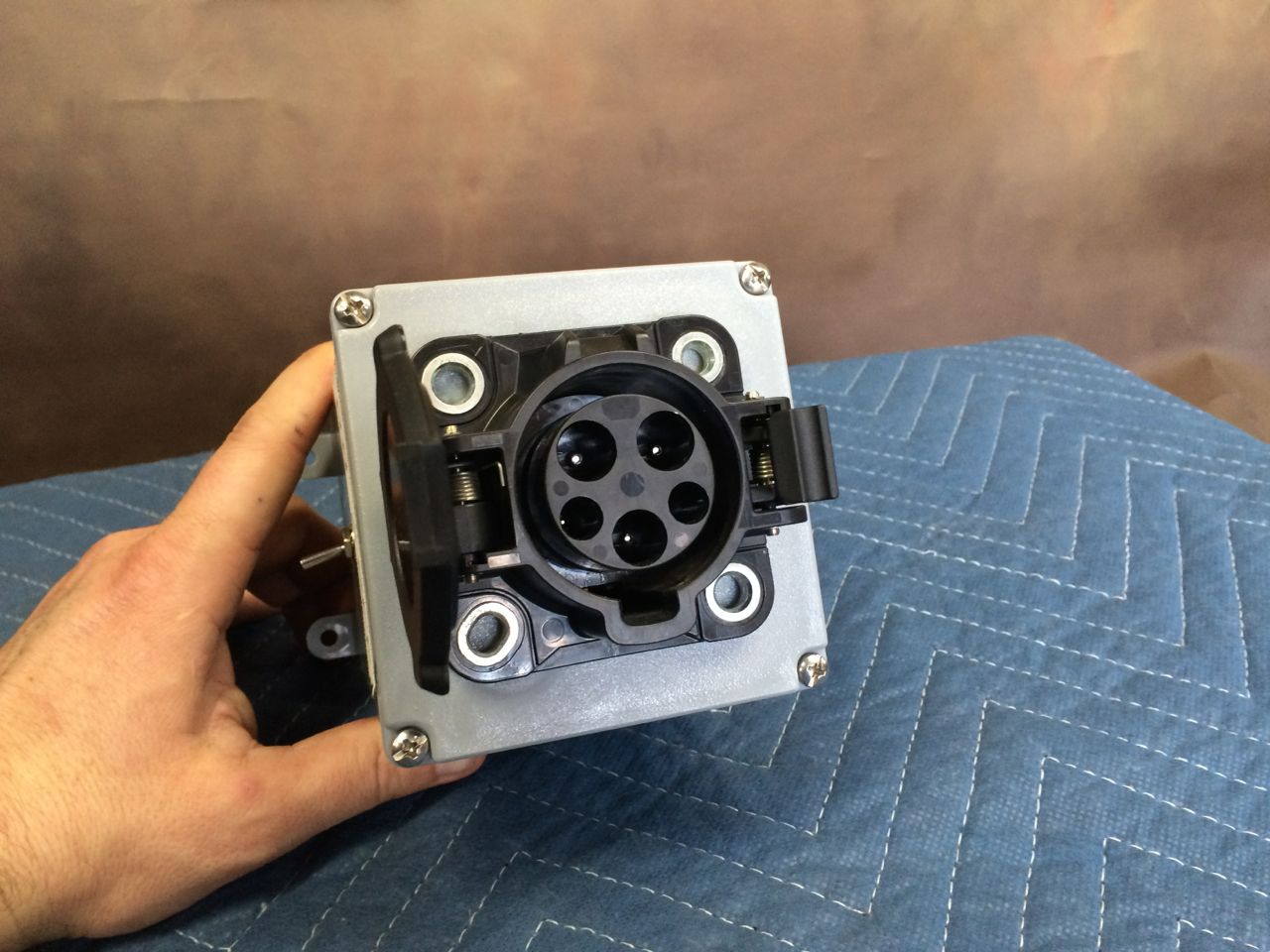 I set to work by first removing the power inlet power from my salvaged Mitsubishi iMIEV. Yes, that’s still sitting in my garage. Needs parts? I’ll give you a good deal, but you can’t buy the power inlet because I just built an adapter from it.