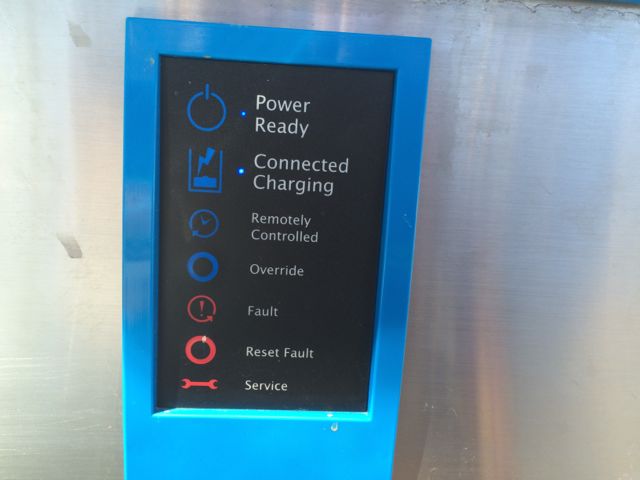 Yipes! I thought for sure something was wrong, that the EVSE faulted out. Nope. It took me a moment to realize that it was just the contractor inside the EVSE turning on. It sure sounded loud though, and I guess I just wasn’t expecting the noise. In all that time that I’ve been working on electric cars, I realized that I have never even ONCE plugged in a car to a commercial 240V EVSE.