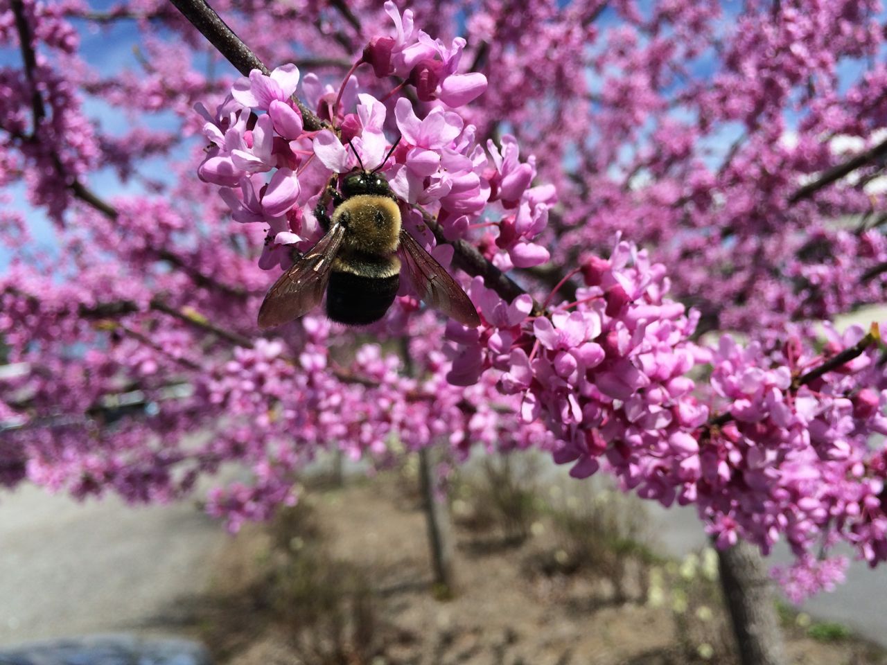 Ok, so not actually a booth, but the weather was great for the event. Spring comes sooner to North Carolina than it does to Wisconsin, so I was enjoying the sunshine, buds on the trees, and the beautiful flowers. I have no idea what this purple-flowered tree was, but the BEES LOVED IT! Also, I think the bumble-bees here are twice as big as the ones back home and they were VERY busy going about their work.