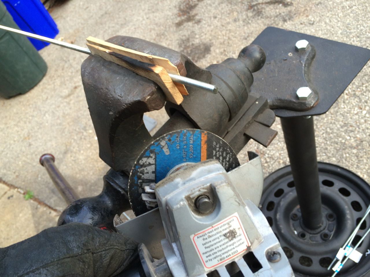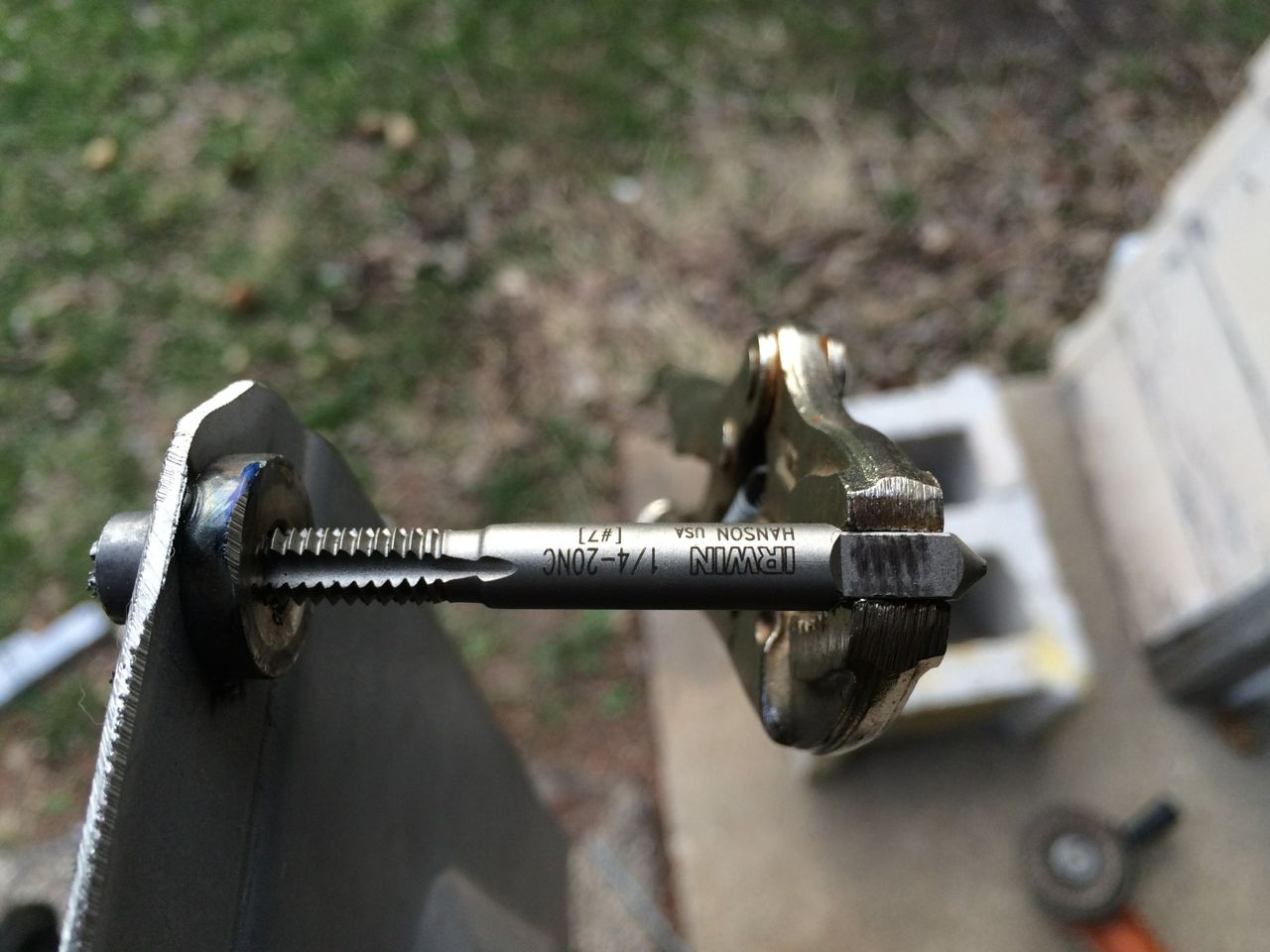 Interestingly enough, quarter-inch is just a hair larger than 6mm when it comes to threaded holes. And since I DID already have a 1/4″-20 tap, all I needed to do is just tap RIGHT THROUGH the existing 6mm holes – no other drilling or machining needed at all. Once I tapped out the four holes in the plate, I could thread cheap 1/4-20 threaded rod in place. Since the finished battery itself will be 24 inches long, I cut the threaded rod to 25.5 inches to allow for the end plates, the nuts and washers, and some room to get all the cell modules in place before compressing them. Again, an angle grinder with a cut-off wheel works great for cutting metal, including the threaded rod.