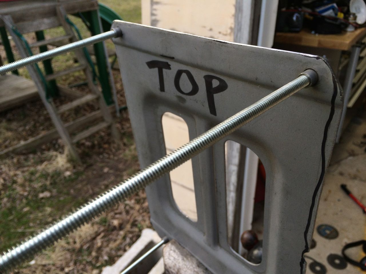 Once my basic plate-and-threaded-rod was together, I could start stacking the cell modules onto the framework. I had already done sort of a mock-up, loosely assembling the cells with the original smooth rods, making sure I had enough spacers, and that I had the cells in the right order. There are “Right-Handed” and “Left-Handed” modules. The polarity is opposite between the two and I needed to make sure that they alternated so that the bus-bars and electric connections would all correctly place the cells in series.