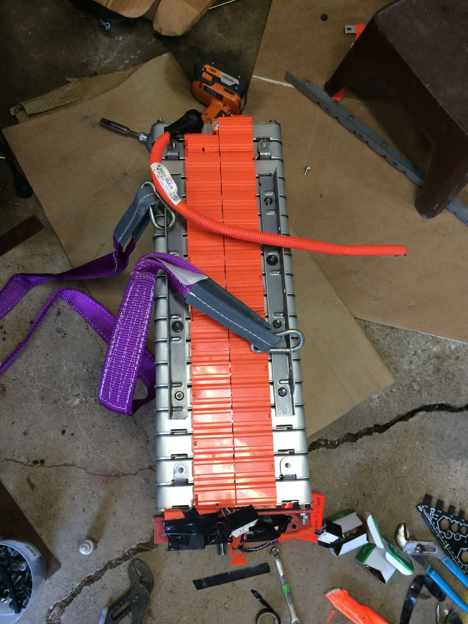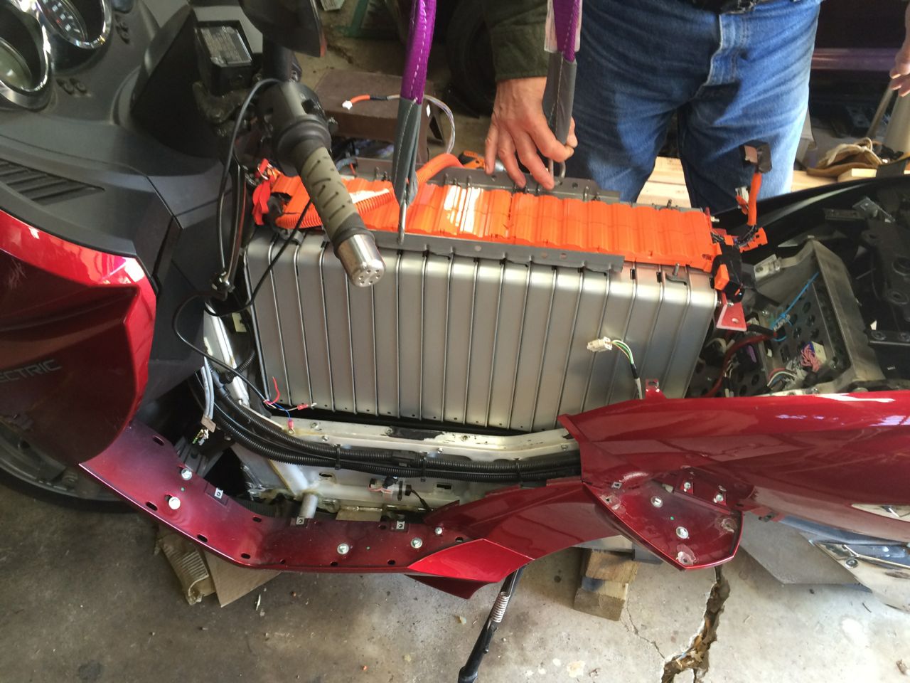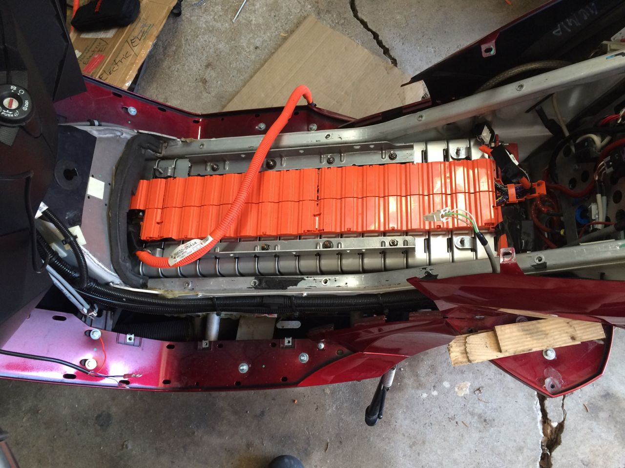 I got the battery in and the Vectrix IS NOW RUNNING ON NISSAN LEAF CELLS!