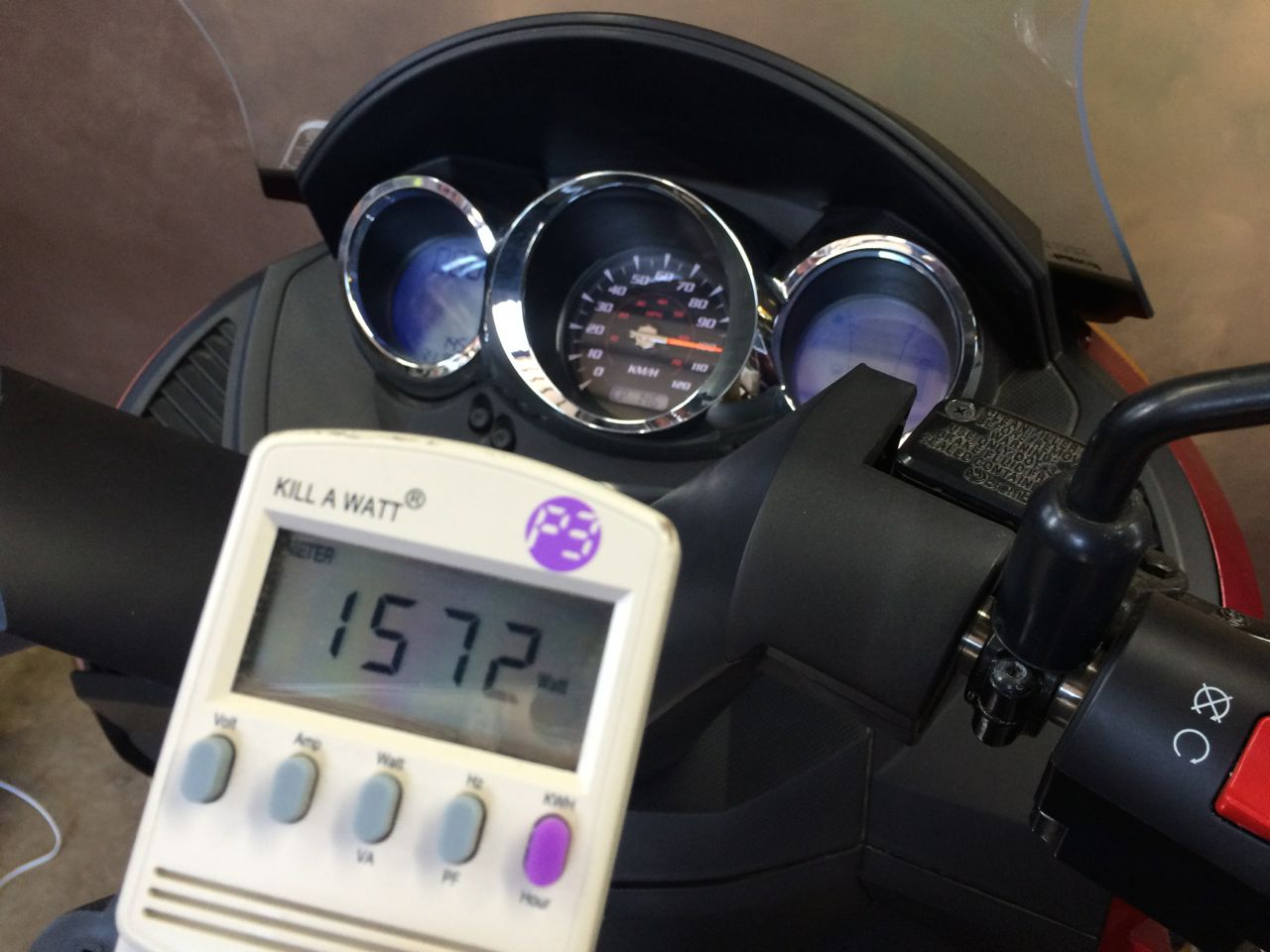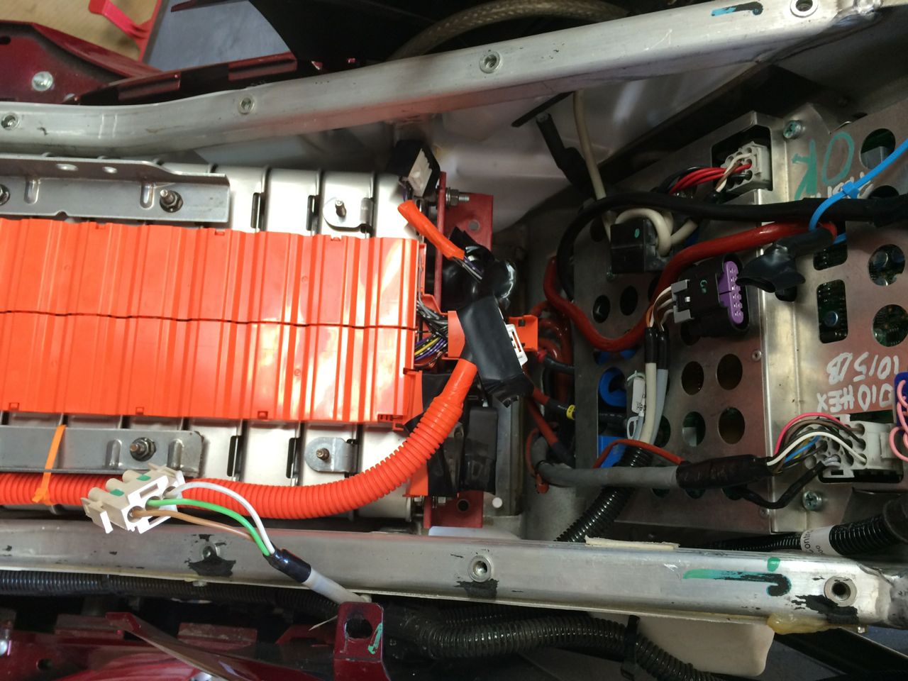 For range, I had gotten as far as 90 miles on a single charge, but that was multiple short trips at in-town speeds. On my Loop the Lake trip, I was looking at 60 some miles per charge, real-world riding, including highways speeds. I reused the original BMS wires from the LEAF for the Vectrix pack to go to some very basic BMS units.