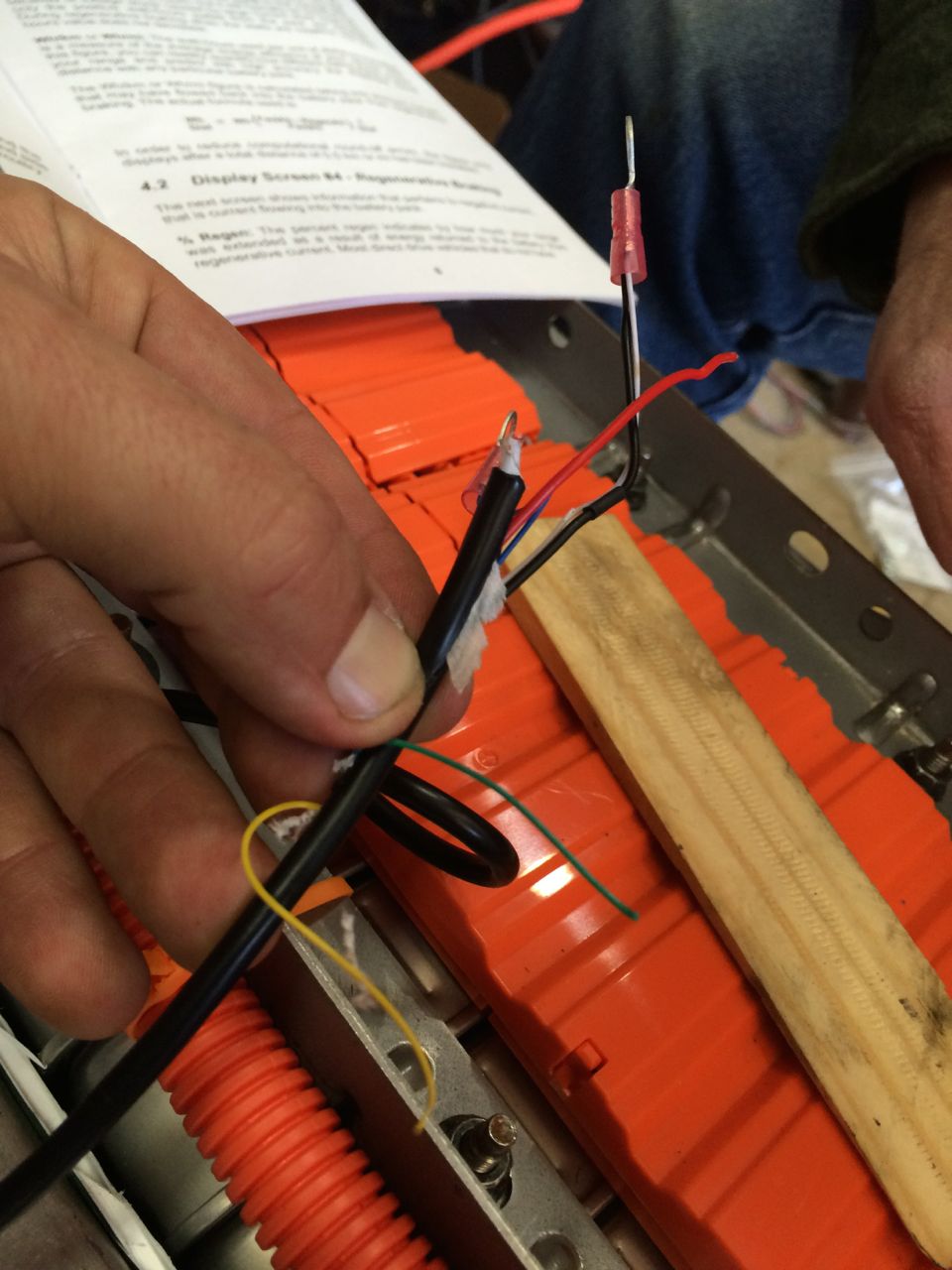 That was about the time that my new friend, Nick, showed up. Nick also has a Vectrix, the same make/model/year/color as mine. Essentially, he has THE EXACT SAME BIKE. He purchased 18 of my LEAF modules from the pack and is planning on doing the exact same upgrade I am. By showing up and lending me a hand, he’s also learning how to do this on his own cycle.