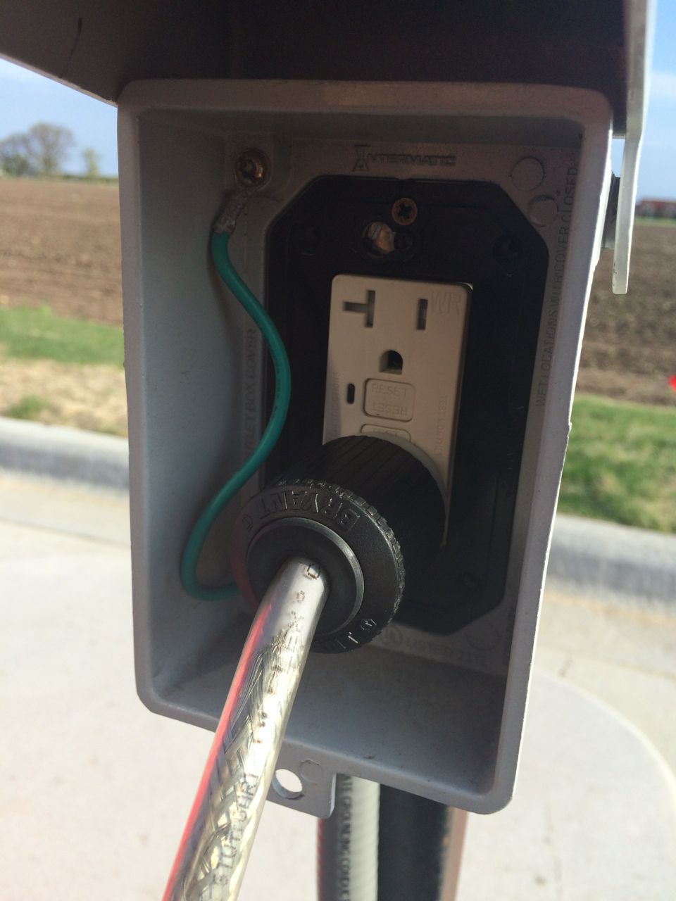 I also wanted to stop by the new Kwik-Trip gas station. It’s a pretty large regional company (Wisconsin, Iowa, Minnesota), which has been very supportive of alternative fuels, including installing compressed natural gas fueling stations along the interstate. Some of the newer stations also have Electric Vehicle Charging. However, it is NOT Level 2! Instead, there is simply a 20-amp, GFI, 120v outlet with a sign stating ELECTRIC VEHICLE CHARGE STATION.