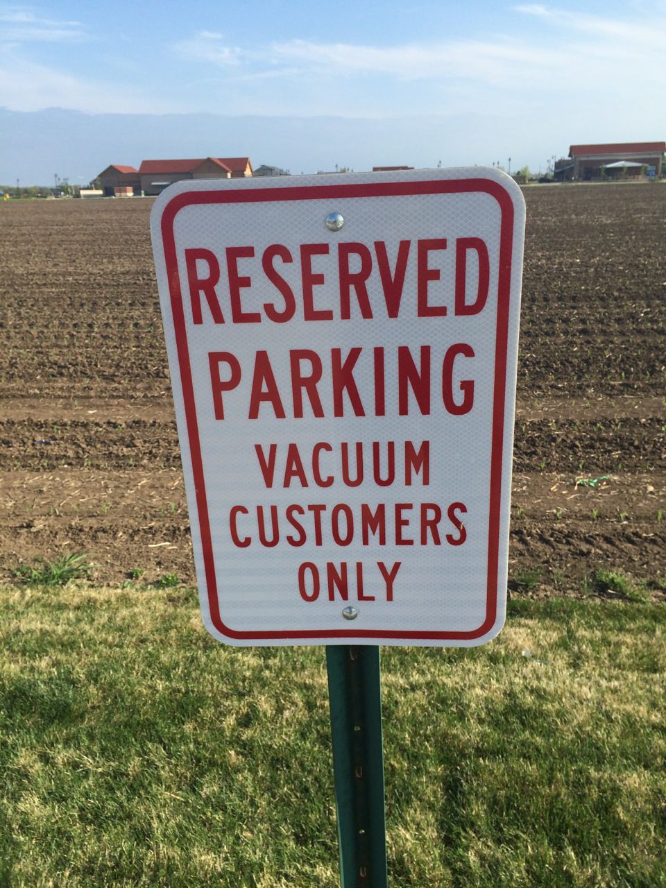 The other oddity of this charging outlet was it’s location. It’s right next to the automotive vacuum, which makes sense, because they have already have to run power to that part of the parking lot for the vacuum. However, the spot that you would park an electric vehicle at to charge ALSO has a sign proclaiming RESERVED PARKING VACUUM CUSTOMERS ONLY. Sounds like some mixed signals being sent here. Perhaps you can only charge your EV if you clean it as well!