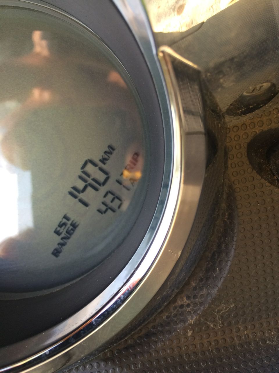 At the start of my ride, the battery pack voltage was at 146 volts. At the end, it was at 140V. I figure that the useful voltage range on my setup is between 146 and 133 volts. So, I used about 46% of the battery pack. The trip distance was 43.1 miles. 43.1/.46=93.7