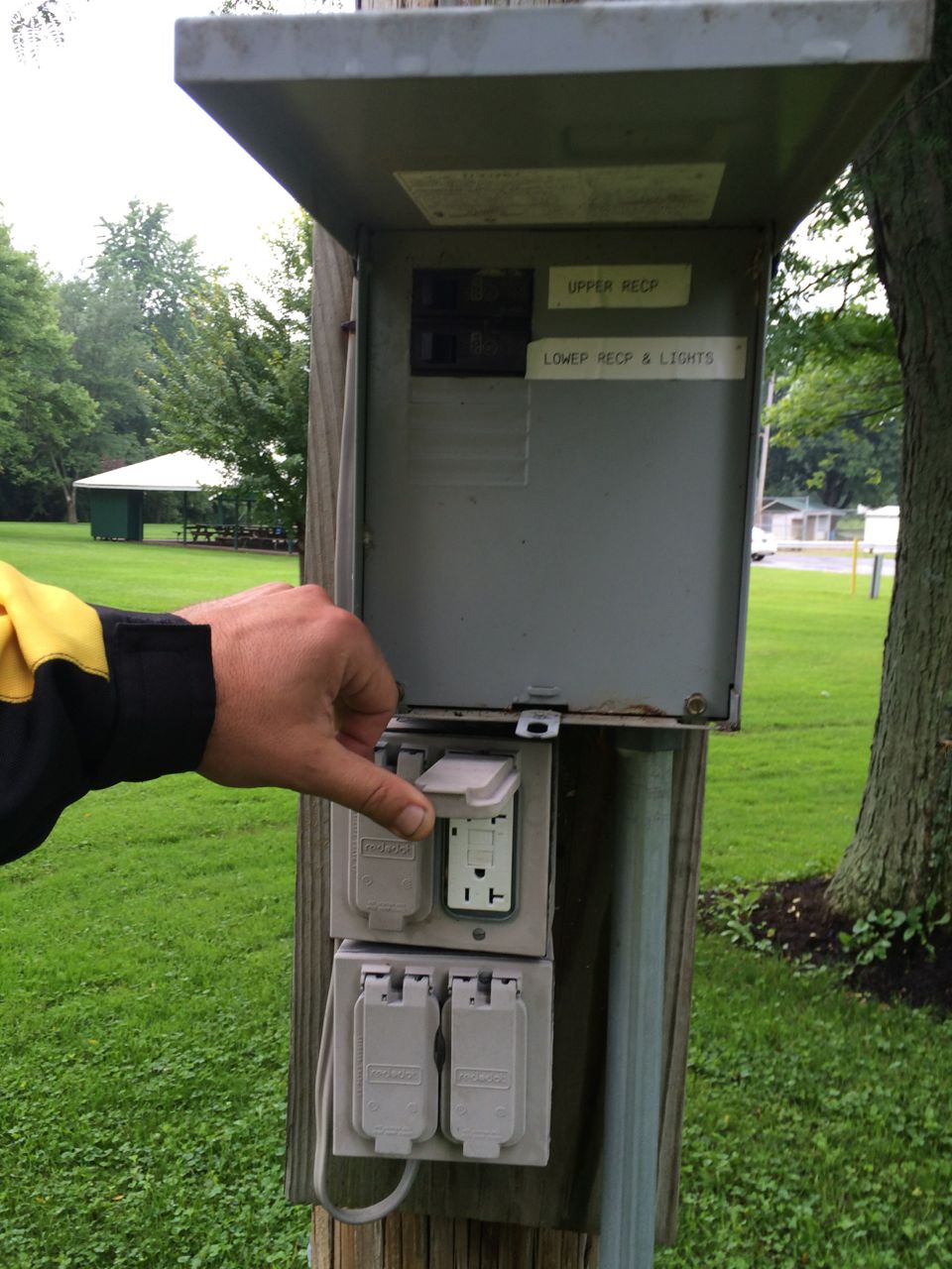 I took a few photos of the electric outlets and park sign and added it to Plug-Share, a user-generated map app which shows locations of public electric power for charging – anything from a volunteers front porch electric outlet to Nissan Leaf Dealerships to campgrounds with RV power.