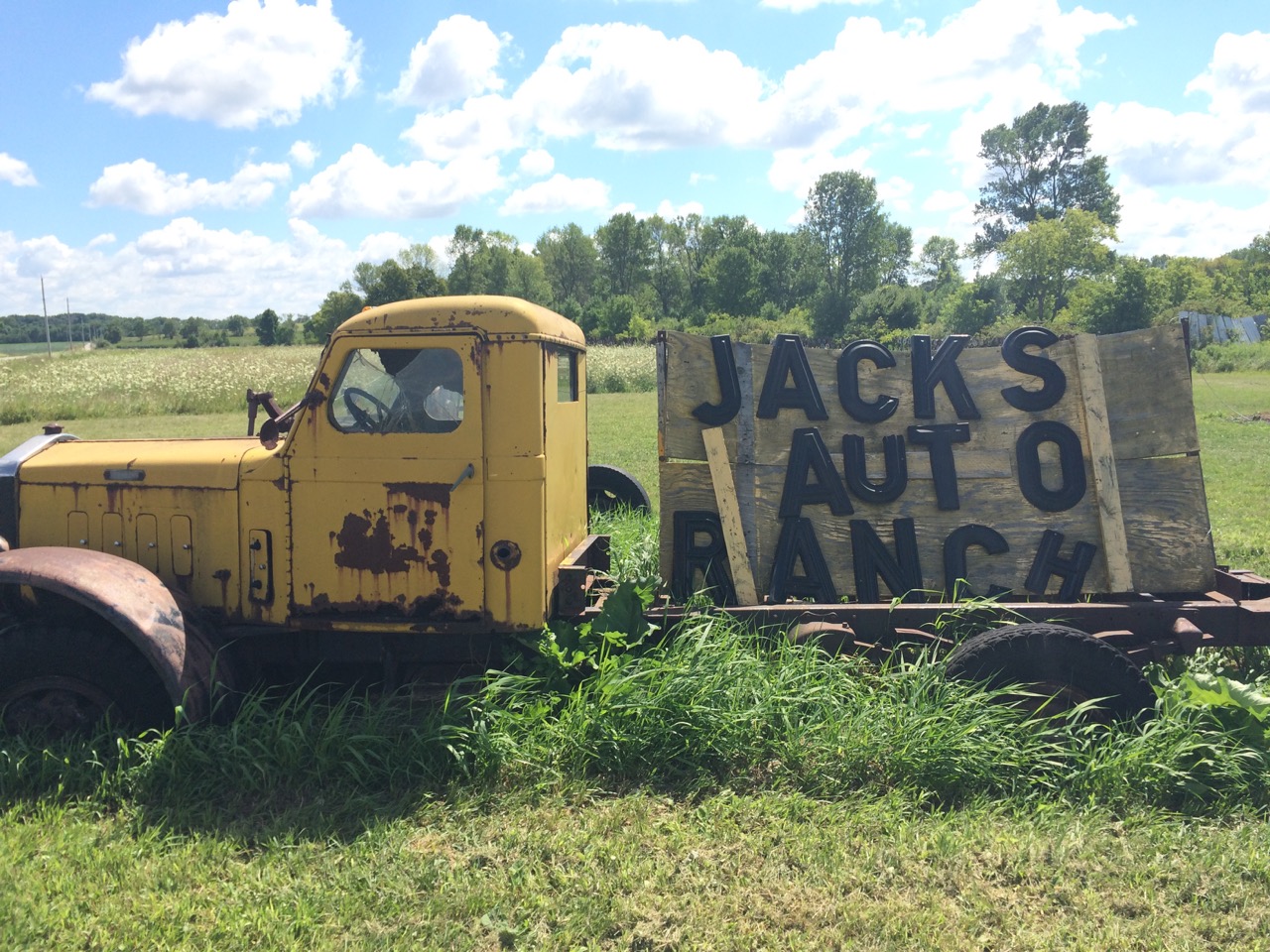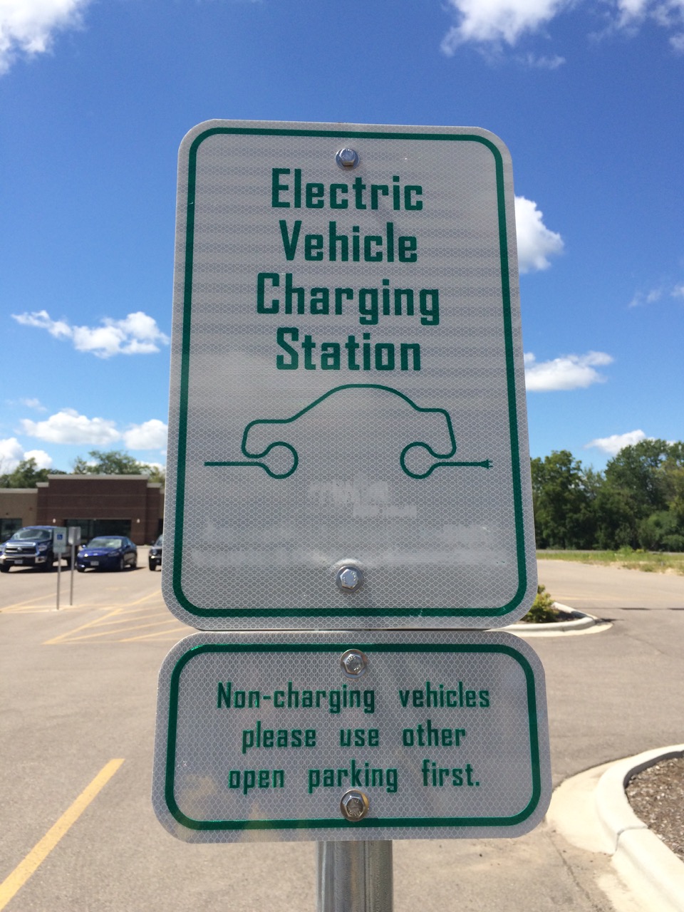 Next, I headed south, towards Fort Atkinson, where both a Ford Dealership and a bowling alley listed J1772 stations on Plug-Share. Because I had been traveling the side roads, I saw all sorts of interesting things. For example, I went right past “Jack’s Auto Ranch”, which is about what you expect it to be, a very rural automotive salvage yard. I also saw a large number of County and local parks. I tried stopping at as many as I could. They are convenient for using the bathrooms and getting drinking water. Of course, I also scoped them out for electricity. Sandhill Station State Campground was one such stop. I had never heard of the place. It was a self-registration campground on the corner of a lake and a scenic trail. Fishing and lake access were available. The group camp site had 4 circuits of 20A 120V power, which would let me run all three chargers at once, although I didn’t stop to do so, as this wasn’t that far from my grocery store charge.