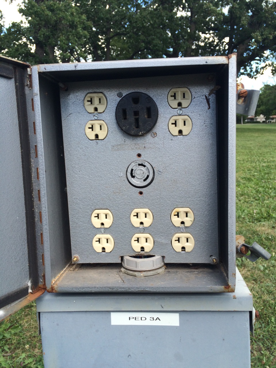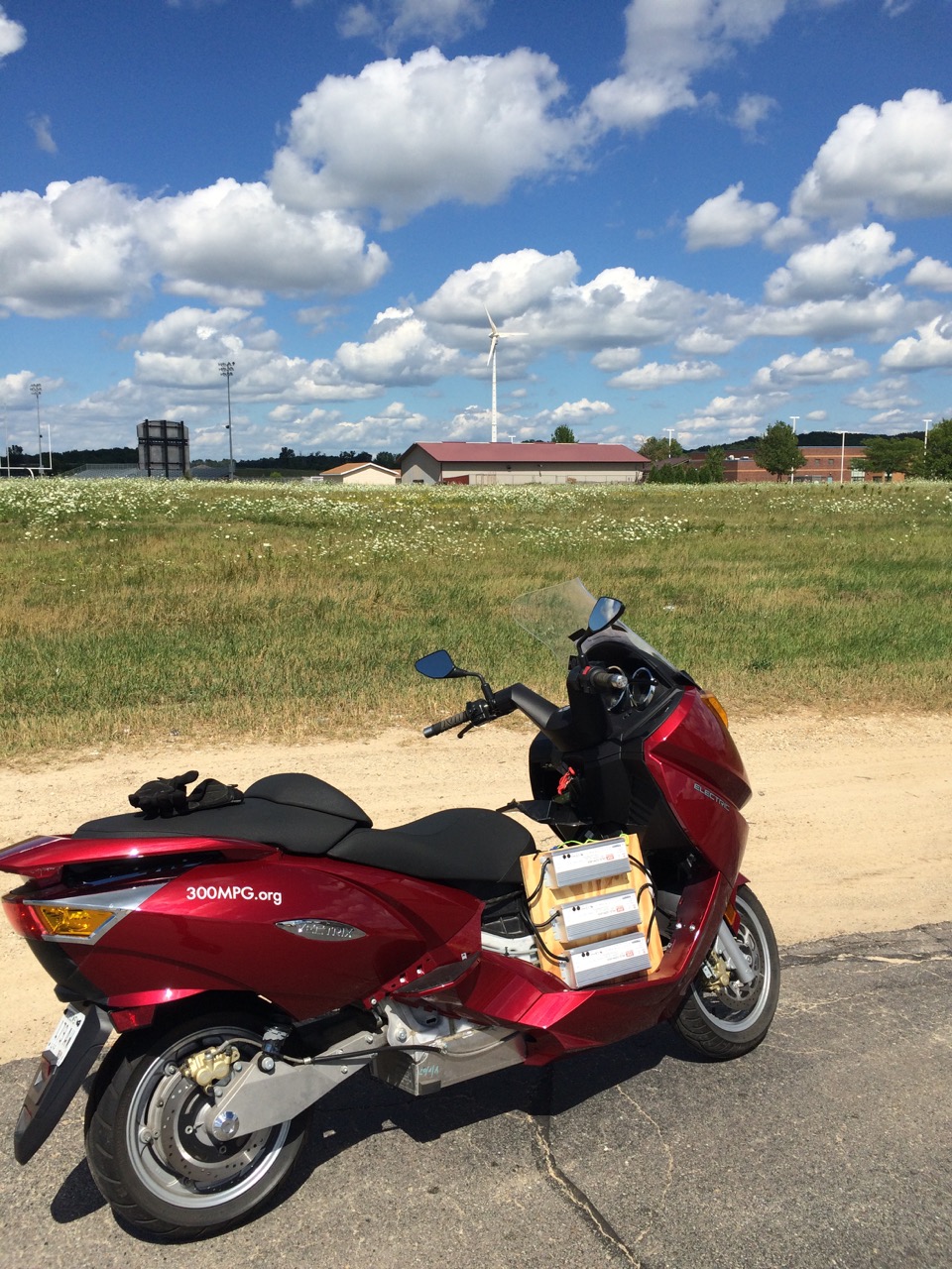 In town, at a traffic light, I noticed that without even trying, I pull away from the cars quickly. I’m starting to take the smooth power and acceleration of the cycle for granted. I rode to Jones Park, essentially the baseball park for the local team, and saw that they also had plenty of electric outlets for festivals, including several 240V circuits, two of which are accessible right at the south parking lot.