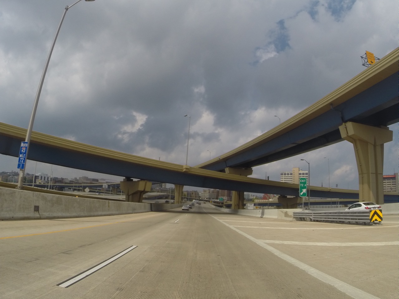 Looking at the clock and my GPS, I realized it would take FOREVER to get to the next location taking the backroads. So, I decided to hop on the interstate. In Milwaukee, the main interstate exchange is all elevated – a series of connecting bridges that extends over the city, with a good view of Lake Michigan.