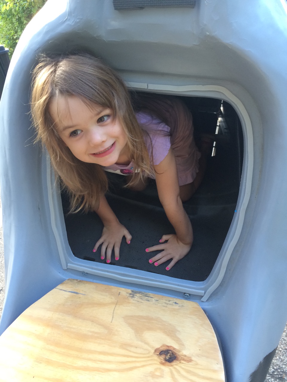 By the time I was ready for the trip, she had already had a few days of getting on the bus by herself. Of course today she had to give me a big hug and check out the motorcycle one last time before I left. Unfortunately, I couldn’t allow any stowaways.