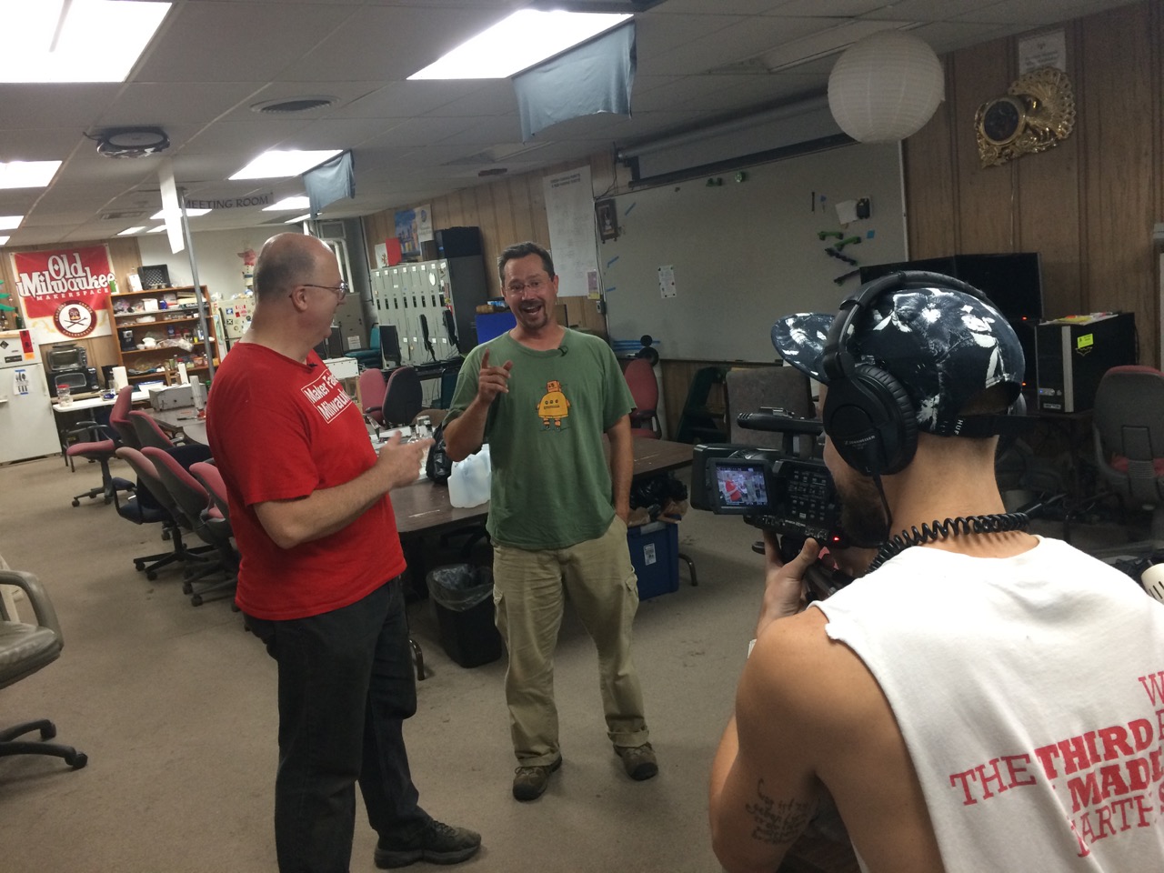 Besides the interview, we also shot a video tour of the Milwaukee Makerspace (for me to post to YouTube when I get a chance to edit it,) and then had Tom show us his car, an all electric Dodge Neon that he built a few years ago, but has kept making some improvements to.