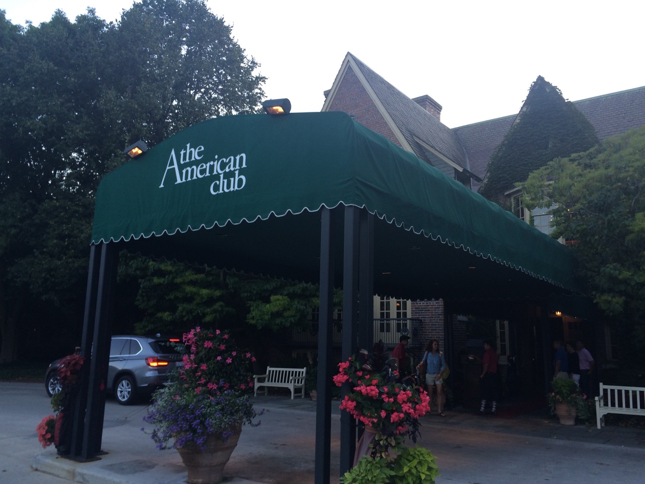 For the next charging stop, I decided that the American Club in Kohler, WI would be my best bet. Kohler is a company town. The Kohler company is probably best known for high-end bathroom fixtures. It’s been around a long time. In fact, the Wisconsin term for a public drinking fountain, a “bubbler” goes all the way back to an early design from Kohler! The whole town is classic brick buildings from a bygone era. The American Club itself is pretty fancy. While once a dormitory for immigrant workers, it’s now a high-class hotel and resort. I’ve actually worked there before, but always through the “servants’ entrance”. In a motorcycle jacket and sweaty t-shirt, I wasn’t even sure I would make it past the valet parking!
