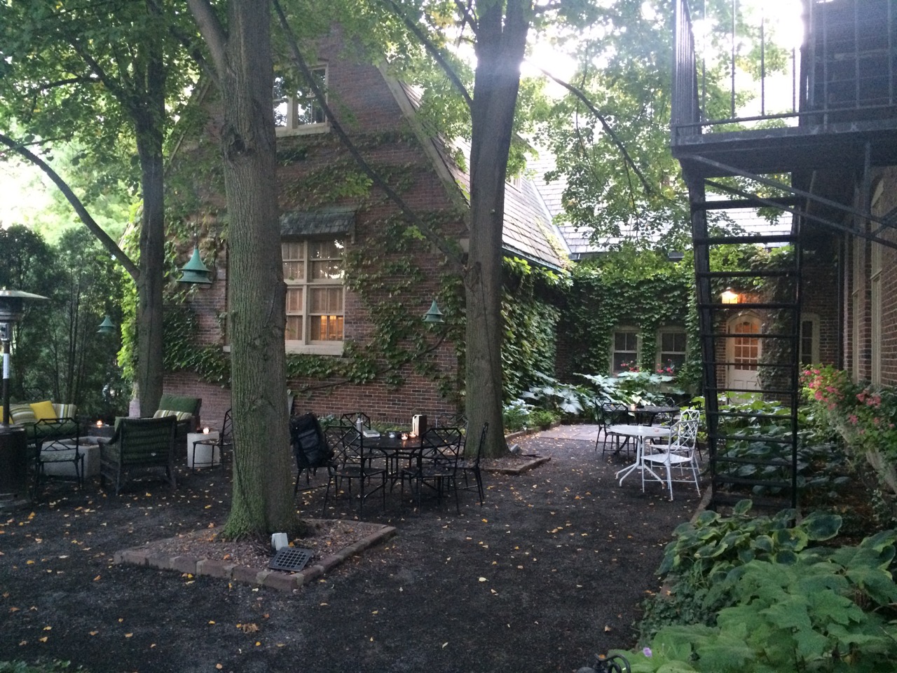 I was now nearly dusk. I was neither properly attired nor well-funded enough for a dinner or other amusement at this establishment. I walked around an noticed a tiny foot-path through a hedge-row. It let to a grotto formed by the carefully arranged plantings and and alcove of the brick building. Cleverly designed, this area was just off the front of the building, yet extremely secluded. Looking at the menus on the tables, it was an area used for a Cigar and Brandy restaurant, with the prices of drinks topping what I had budgeted per day for lodging. No one was there, so I sat down, and started on the first chapter of ZEN AND THE ART OF MOTORCYCLE MAINTENANCE.
