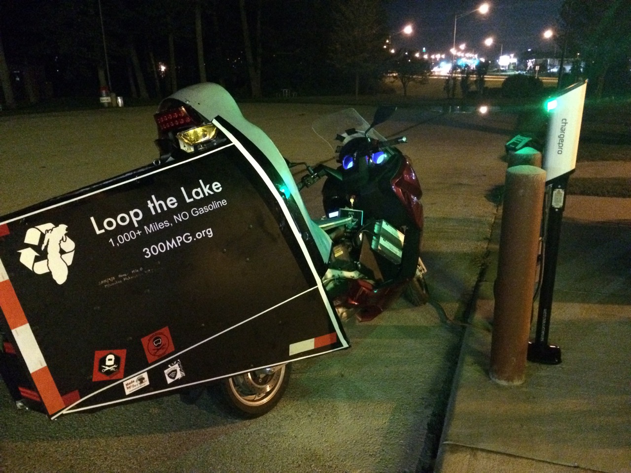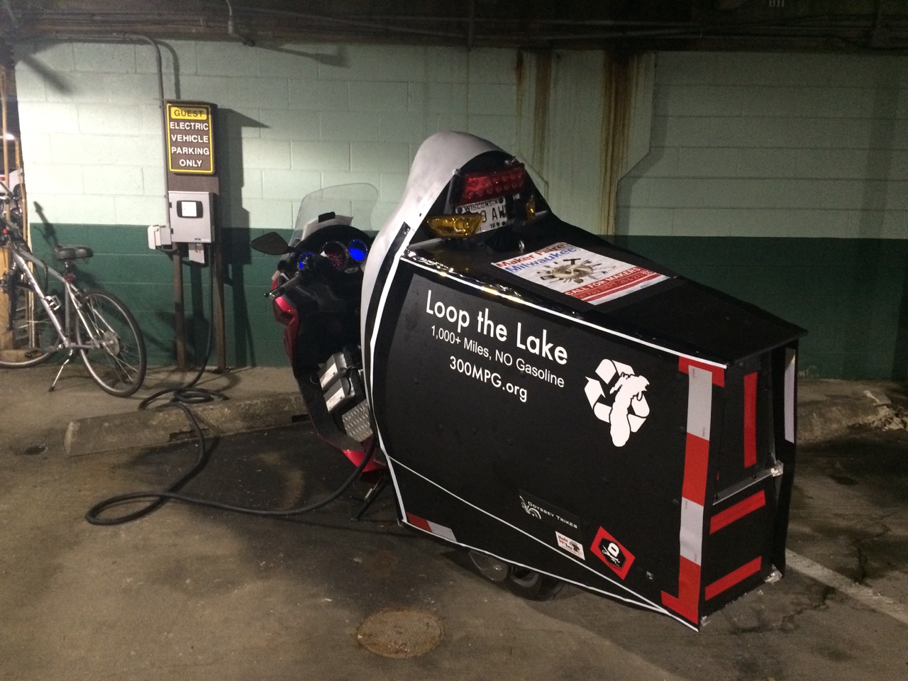 Was it only this morning that I said goodbye to my family? It already seemed an era ago. I went straight from never really having tested the cycle to going on the interstate. I met with two DIY’ers who are building electric vehicles and inspiring others to to build, design, and make. I was starting to figure out what I would need to do for recharging. Heck, I even found Waldo. And this was only day one. I’d have at least another week of this. We’ll see what tomorrow will bring.
