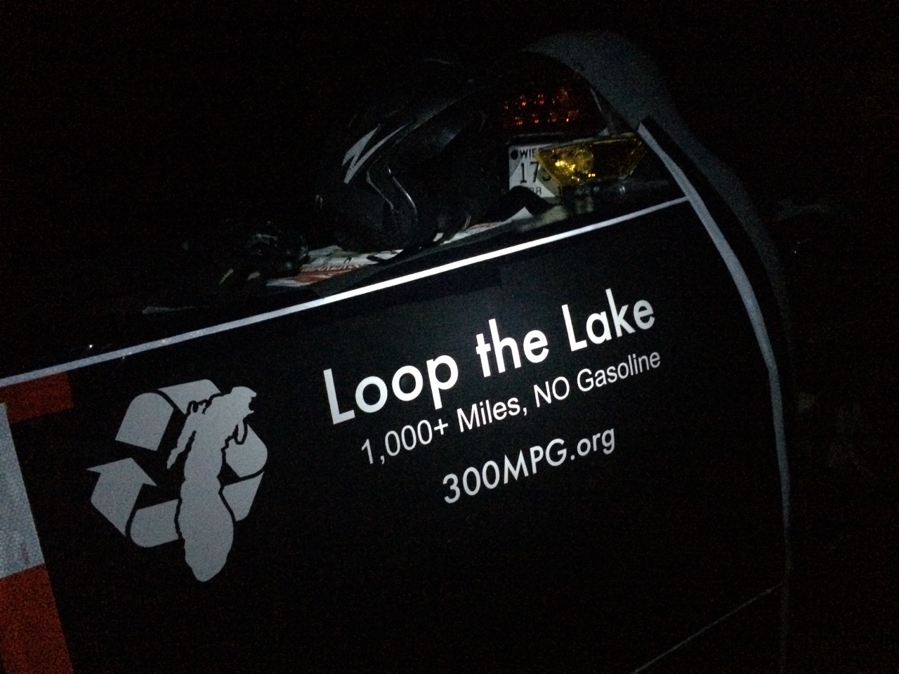I headed east to Sheboygan, and then north, hugging the coast of Lake Michigan. Now dark, I couldn’t see the lake at all. There was simply a black expanse where there were no trees, buildings, or street-lights. It was as the though world simply ended. To my left was civilization and the man-made world, and to my right was eternal darkness and the steady pulse of pounding surf, accented only by the whir of my electric motor and gears.