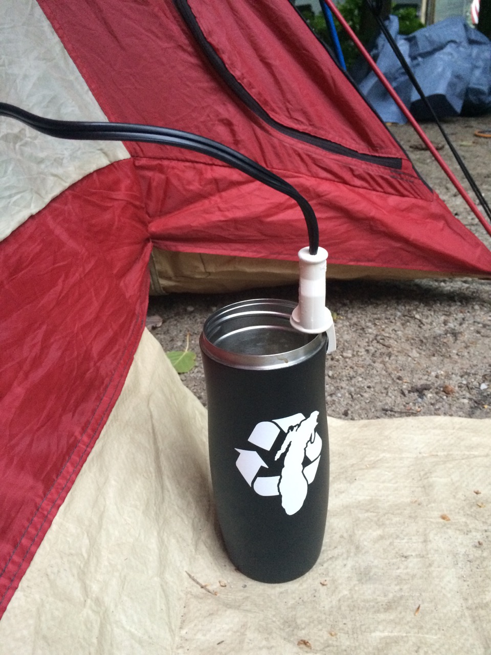 On the other hand, I knew I would always be by electricity. So, I had purchased a small water heating element. These are popular for heating a single cup of water for tea. A metal loop comes off the end of an electric cord, with a small clip to hook to the rim of the cup.