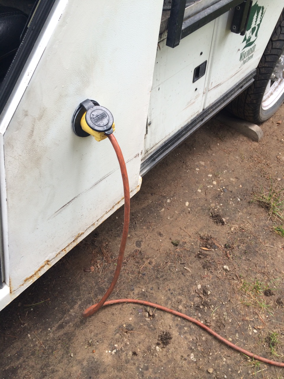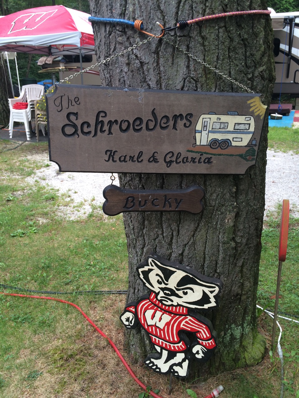 After breakfast, I checked out where I was, finding the bathroom and other necessitites. The camp hosts were clearly University of Wisconsin Badgers fans. They were even electric vehicle users too – the park vehicle being a Columbia ParCar – an electric utility vehicle made in Wisconsin. It makes sense. EVs are quiet and practical, and there was even the main power post right at the camp host site for easy DIY refueling.