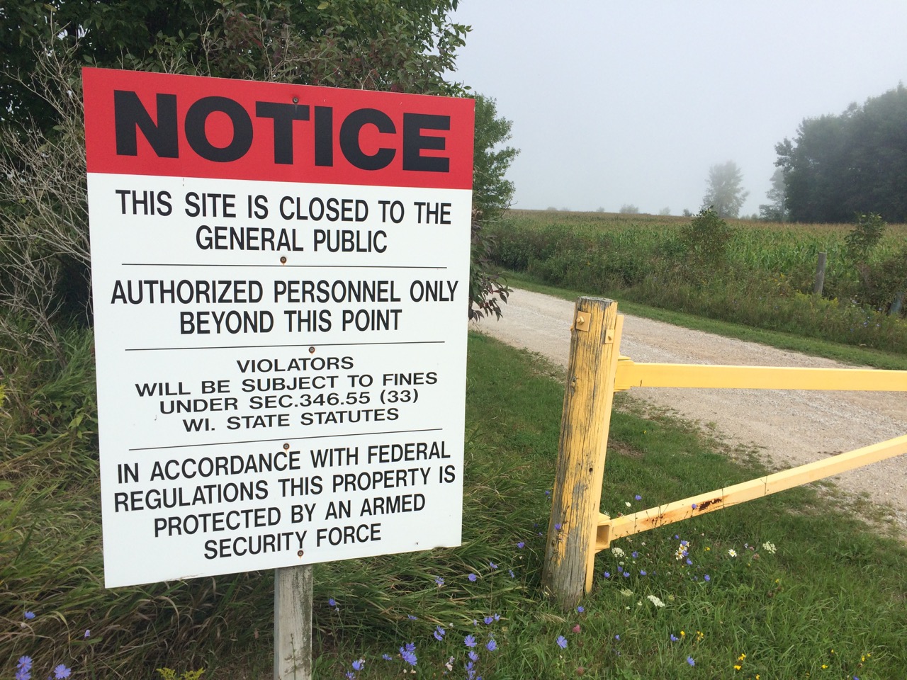 It was almost 10:30 in the morning by the time I actually hit the road again. I headed north, again hugging the coast but with really no view. As the road curved, I saw an interesting private road (barricaded off) and a sign warning of live ammo firing. This was the back entrance to the Point Beach Nuclear Power Plant. Clearly this was a warning – “Hey you, Terrorist, KEEP OUT!” I checked the map and I was now on “Nuclear Rd.”