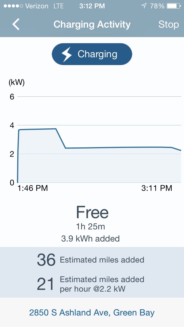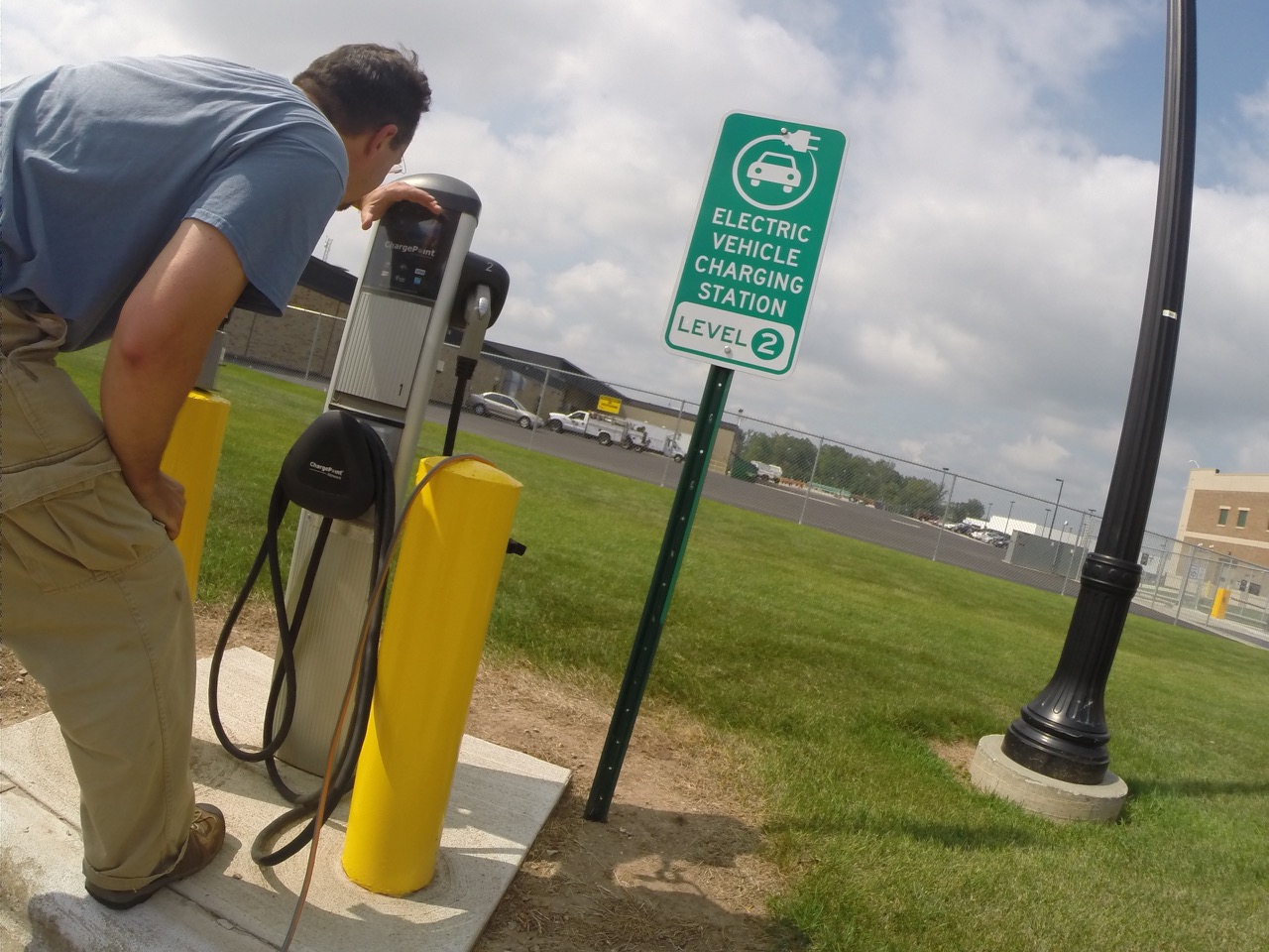 Getting from Two Rivers to Green Bay was pretty uneventful. The weather had cleared up and skies were a beautiful blue. The main trick to Green Bay was that it had the LAST public EV charging station in about 250 miles. In fact, it actually had a NUMBER of public EV chargers.