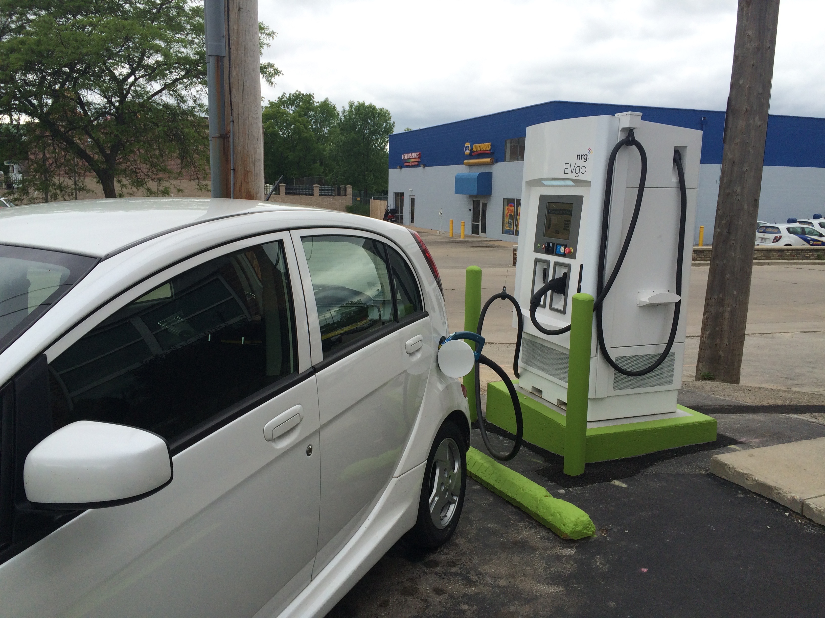 I happen to drive a Mitsubishi iMiEV – the electric car with the smallest battery pack (and shortest range) of any commercially-built Battery Electric Vehicle in the United States. The official EPA range per charge is 62 miles. I live about 35 miles from downtown Milwaukee. In good weather, and given enough time to take the backroads, I can just barely eek enough range out of the car to make it there and back without charging.