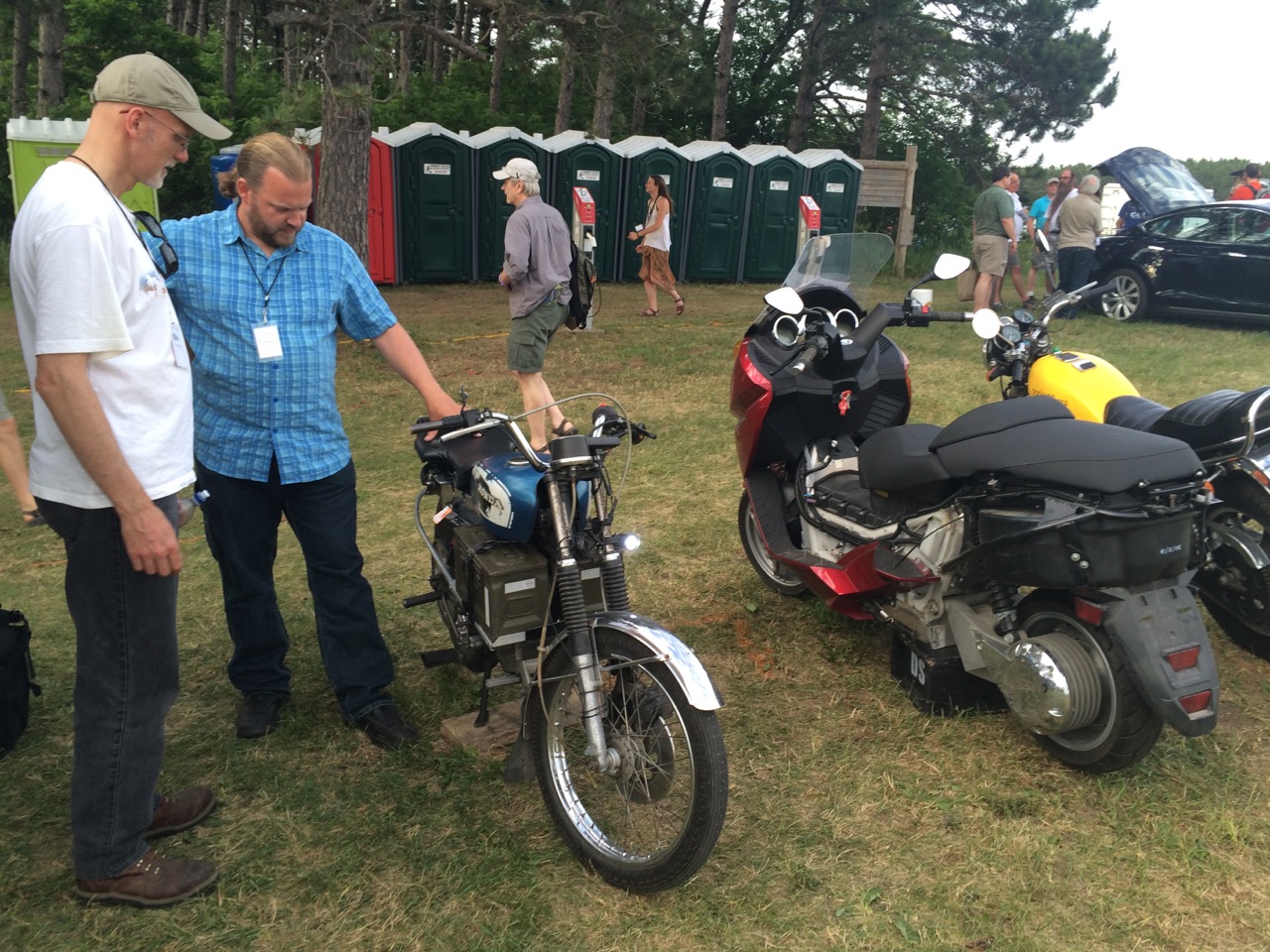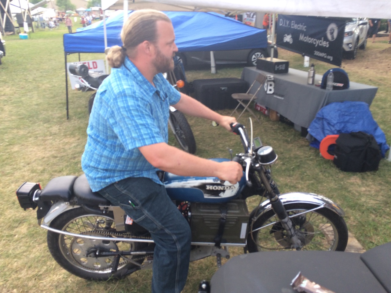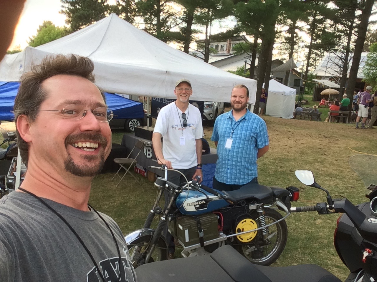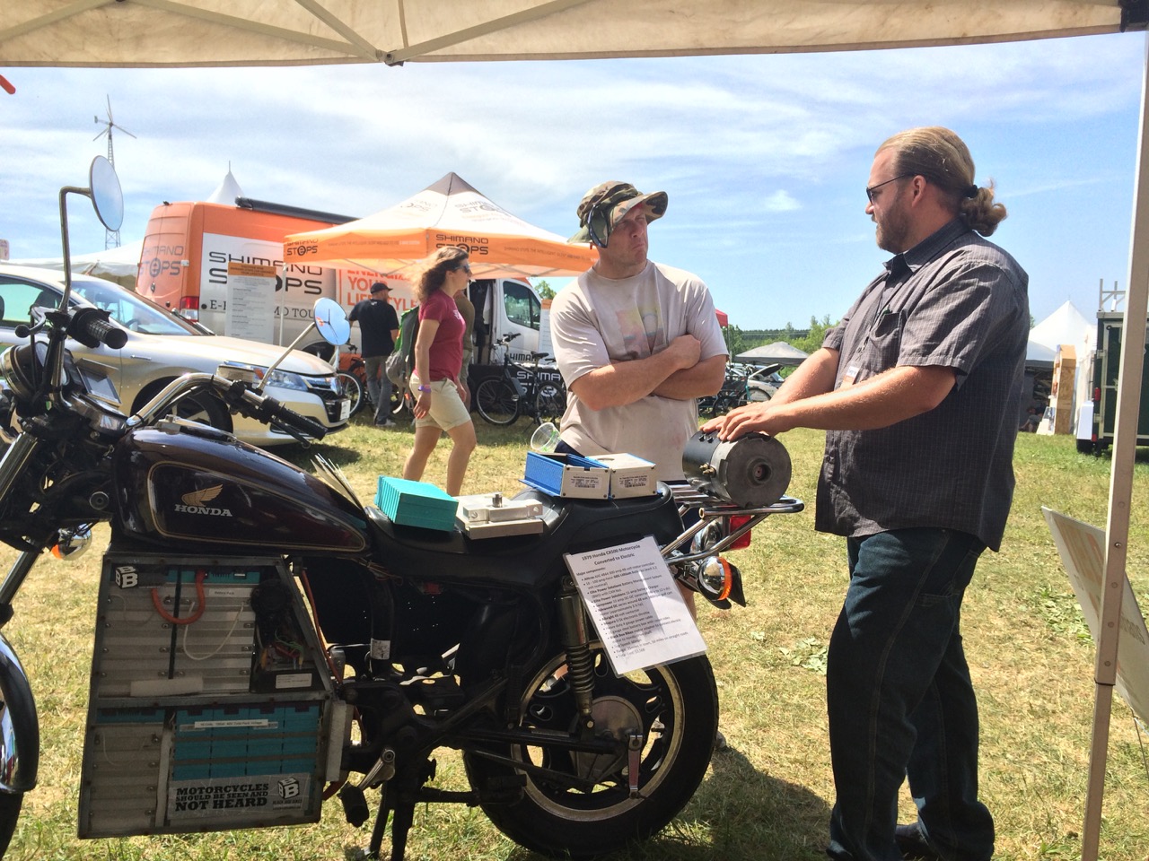Our friend, Kraig Schultz, who I rode part of LOOP THE LAKE with, came on out from Michigan and brought his smaller electric motorcycle to show off. He’s a long-time cyclist with the heart of a hippie and the mind of an engineer. Kraig also brought a neat little portable display showing how electric vehicles work.