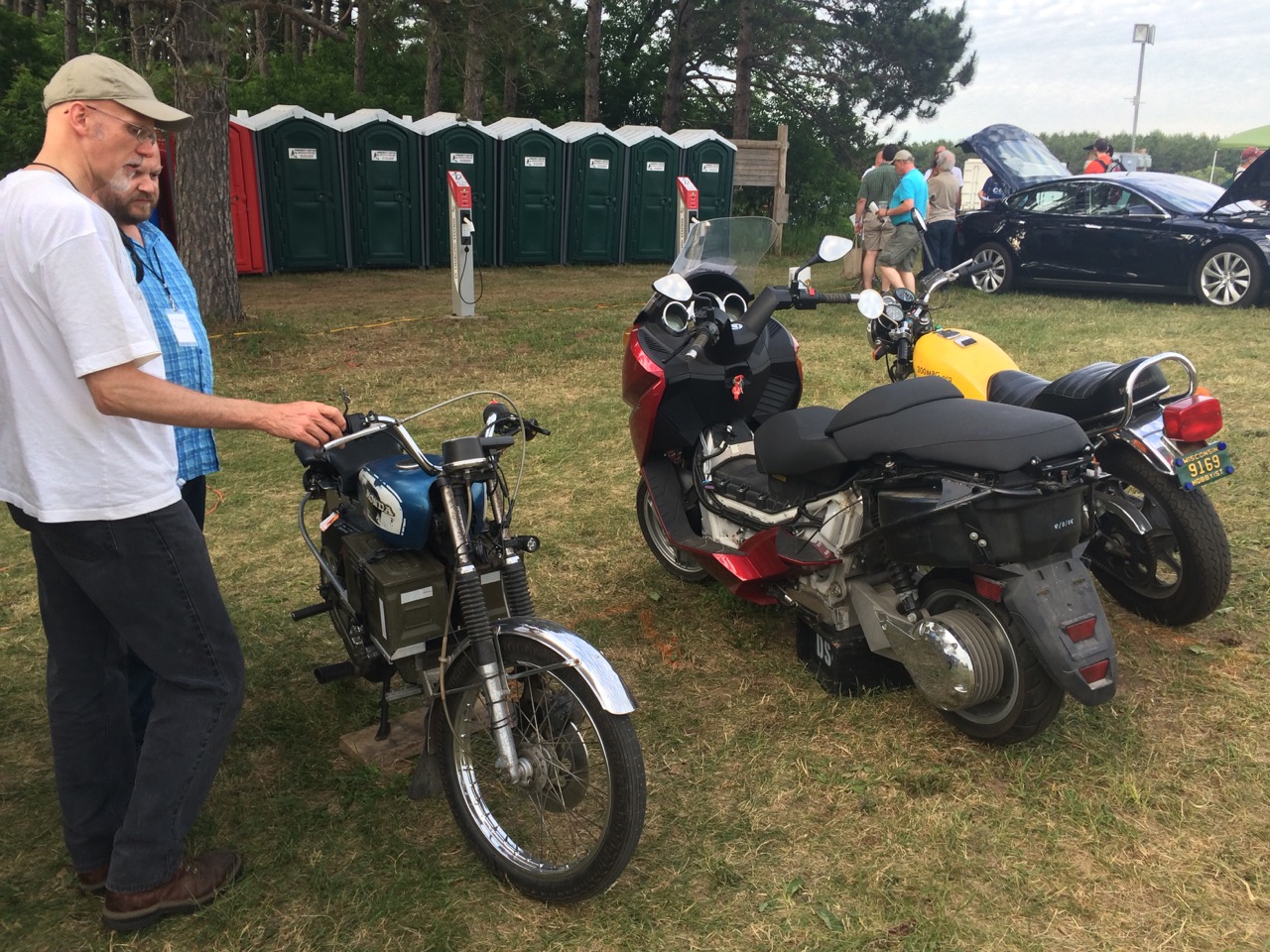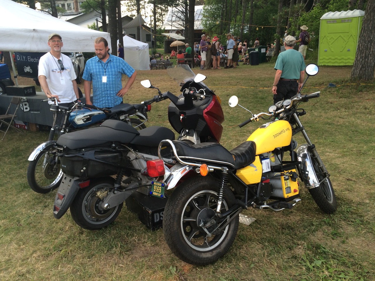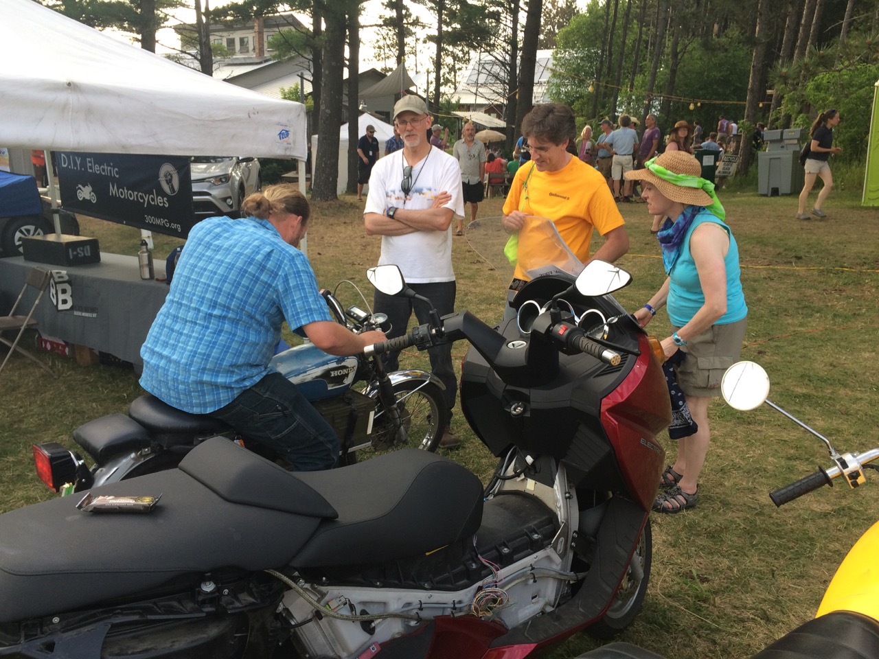 Our friend, Kraig Schultz, who I rode part of LOOP THE LAKE with, came on out from Michigan and brought his smaller electric motorcycle to show off. He’s a long-time cyclist with the heart of a hippie and the mind of an engineer. Kraig also brought a neat little portable display showing how electric vehicles work.