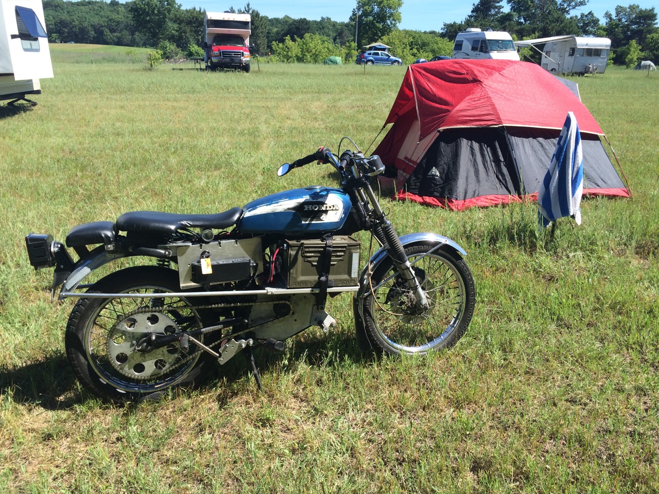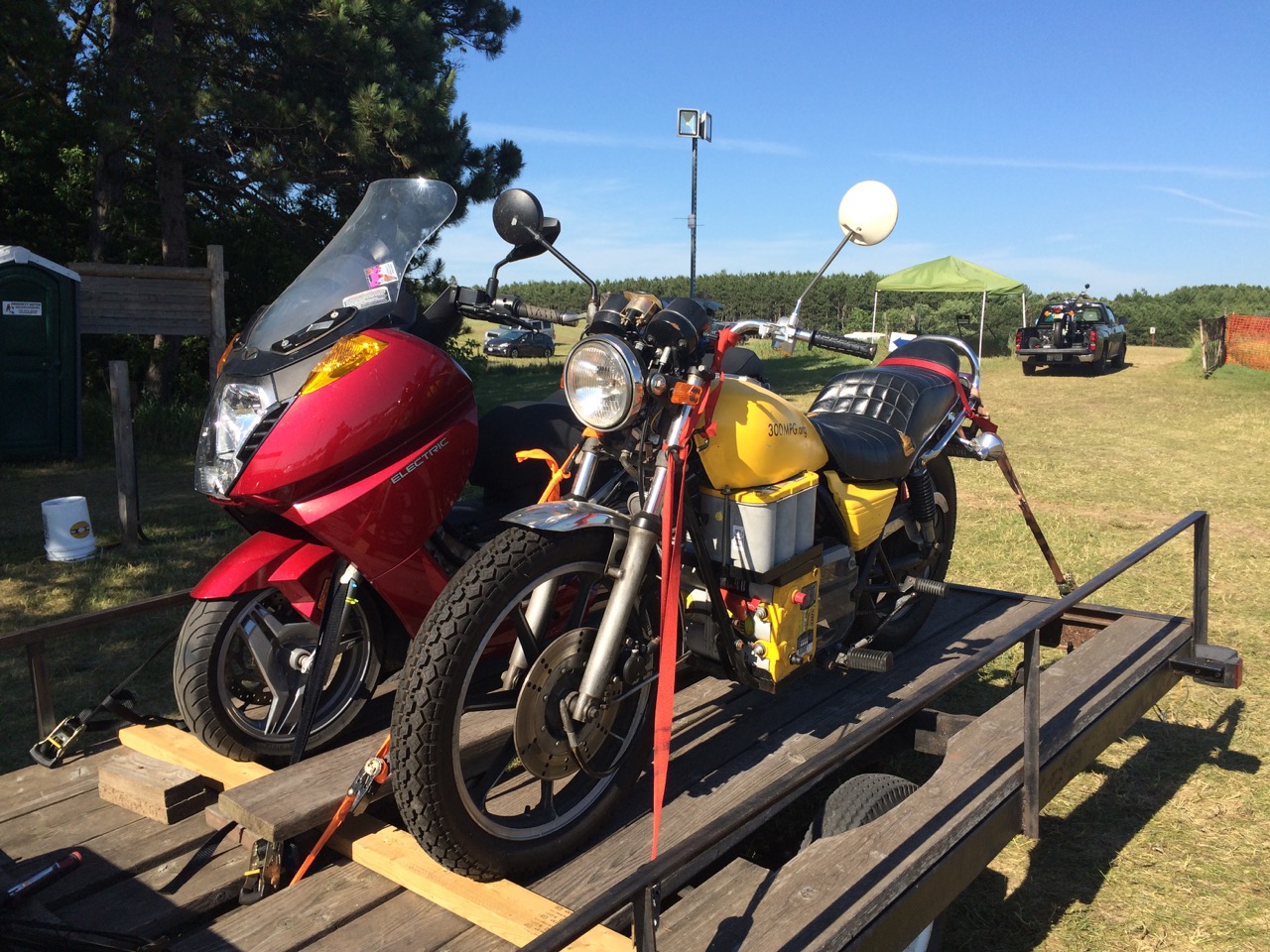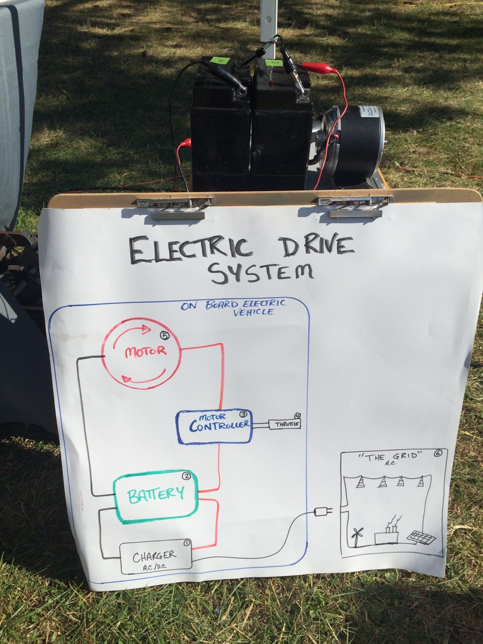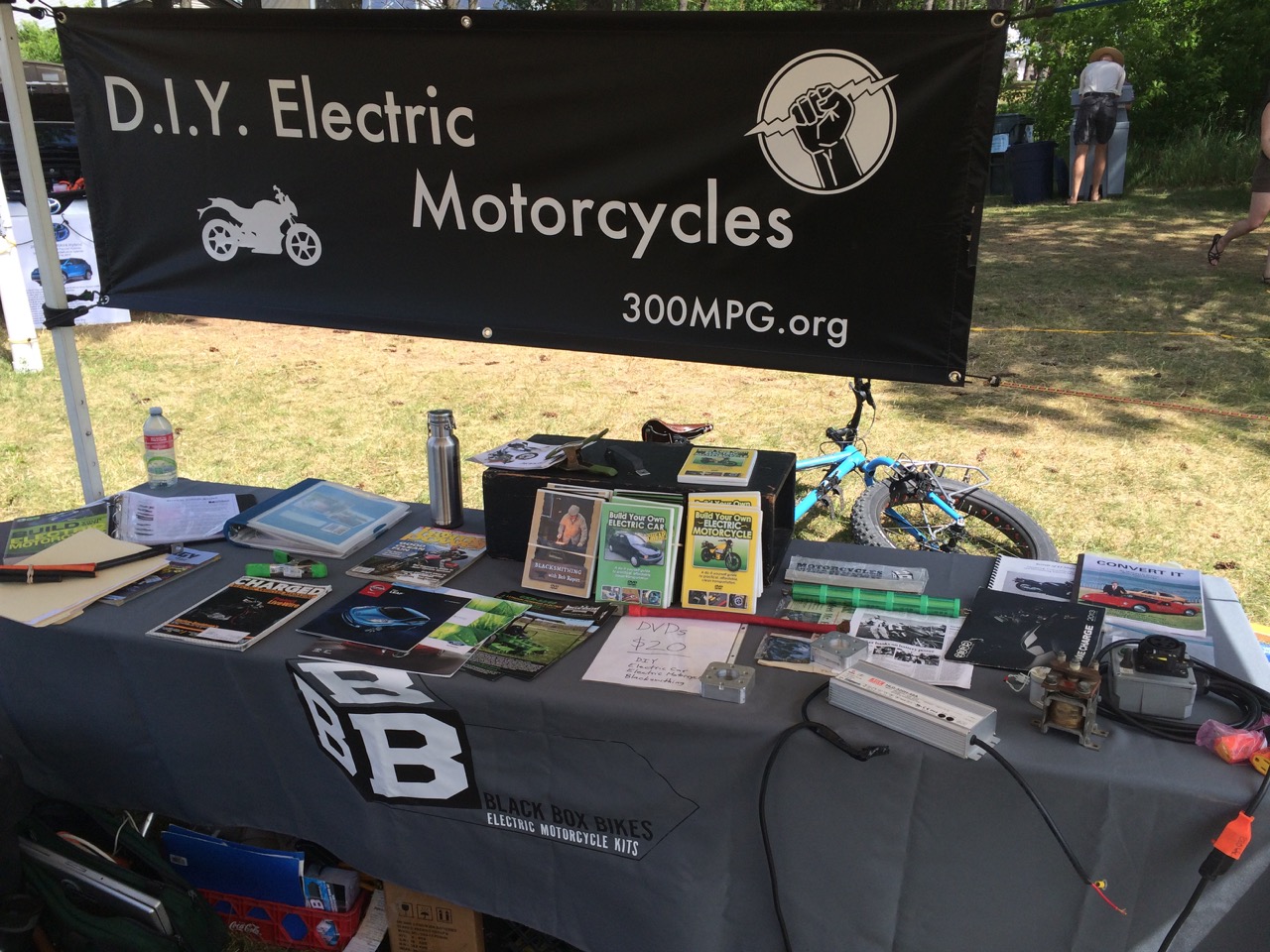 Our friend, Kraig Schultz, who I rode part of LOOP THE LAKE with, came on out from Michigan and brought his smaller electric motorcycle to show off. He’s a long-time cyclist with the heart of a hippie and the mind of an engineer. Kraig also brought a neat little portable display showing how electric vehicles work.