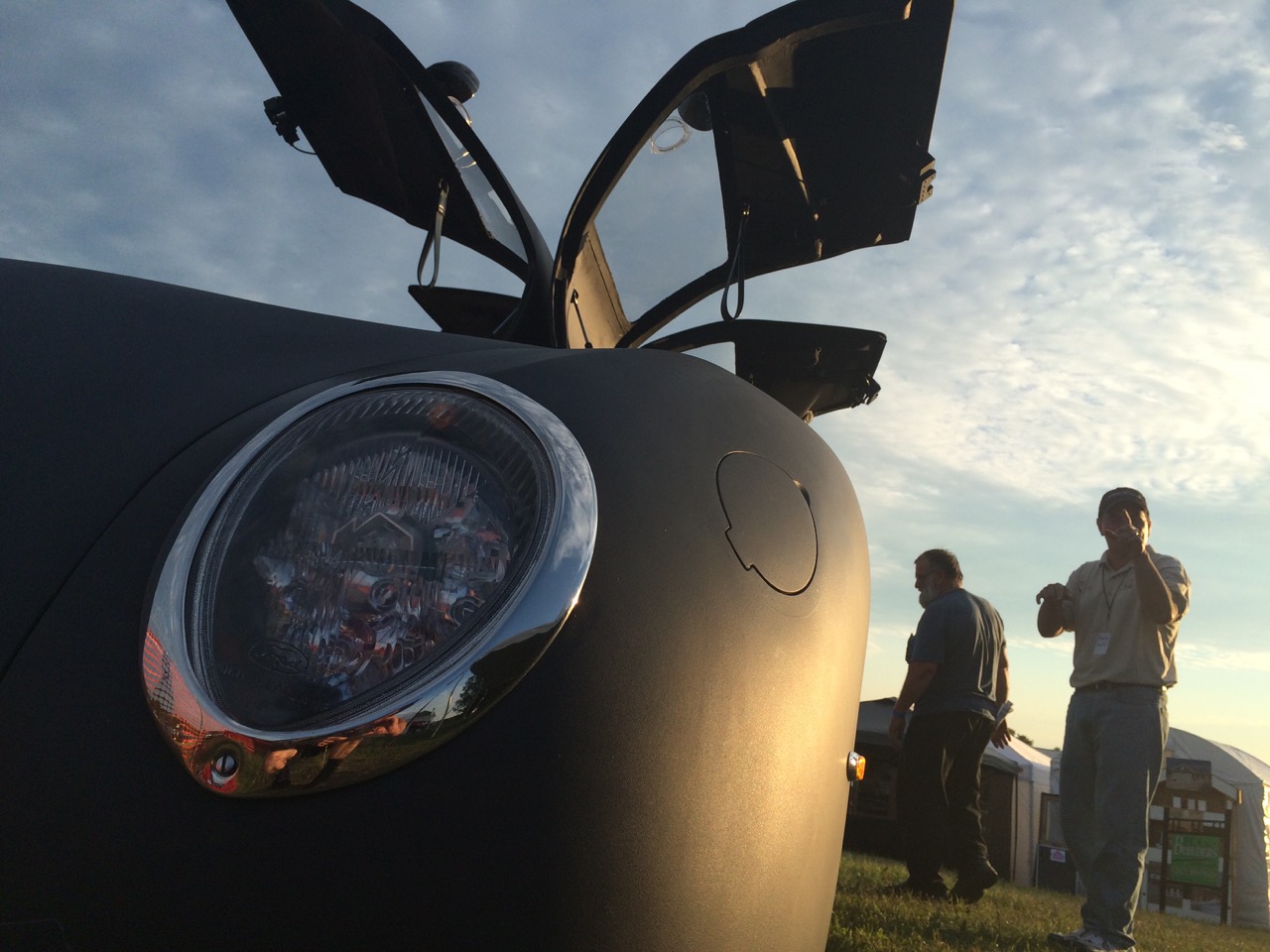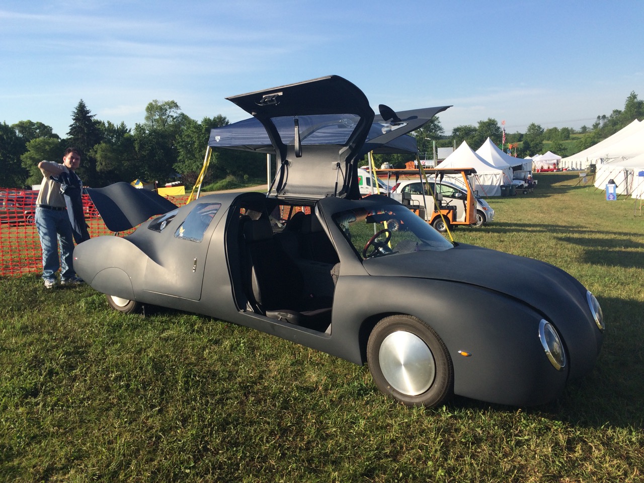 Kevin was kind enough to give us a ride in unique car. Nothing is quite as much fun as going 0 to 60 in six seconds on a side-road while facing backwards! Kraig and I were in the back seats. Although I’ve had fun getting to test drive a Tesla, they feel almost pedestrian compared to this unique vehicle, which gets double the fuel economy of anything else on the road.