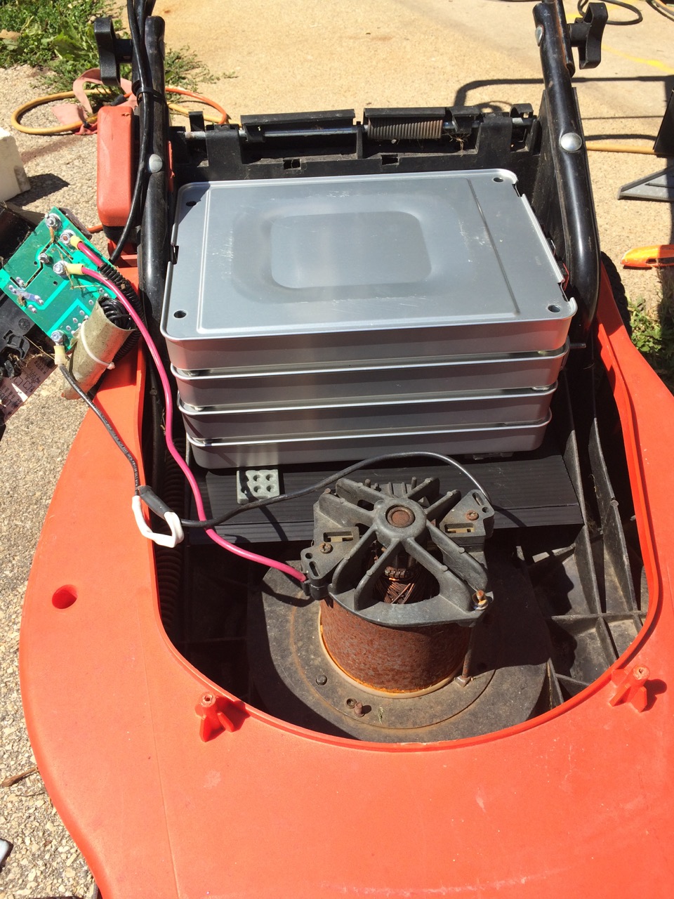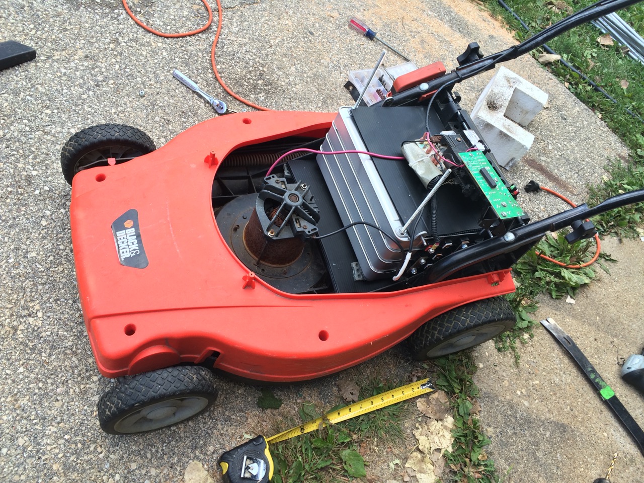 Yesterday, I was doing some yard work, including mowing my lawn. However, the batteries in my old electric push mower were really running down. Time for an upgrade. I looked around and realized that I had nearly all the parts needed to not just replace the batteries, but to upgrade them to Lithium…